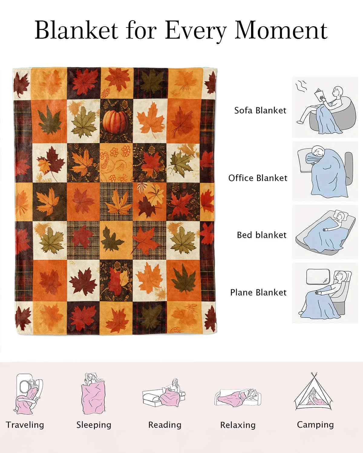 Autumn Leaves and Pumpkin Harvest Gift Blanket-Cozy Classic,Plush,Warm,Durable,For Couch,Living Room Use