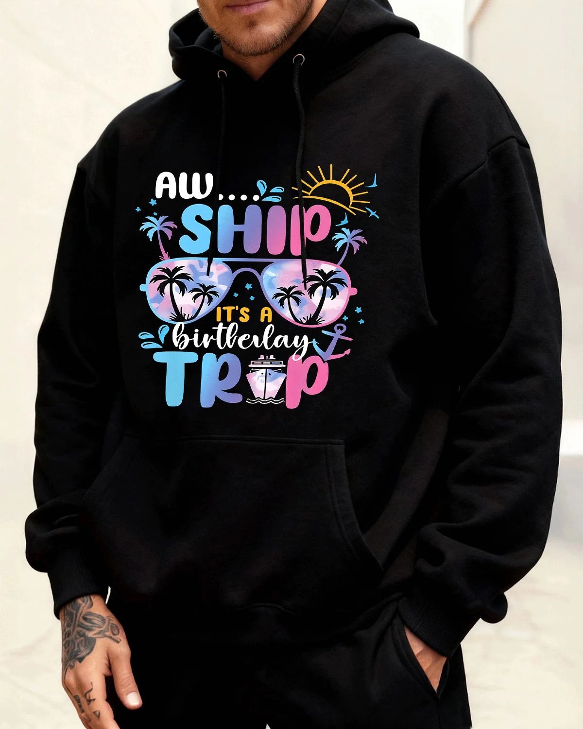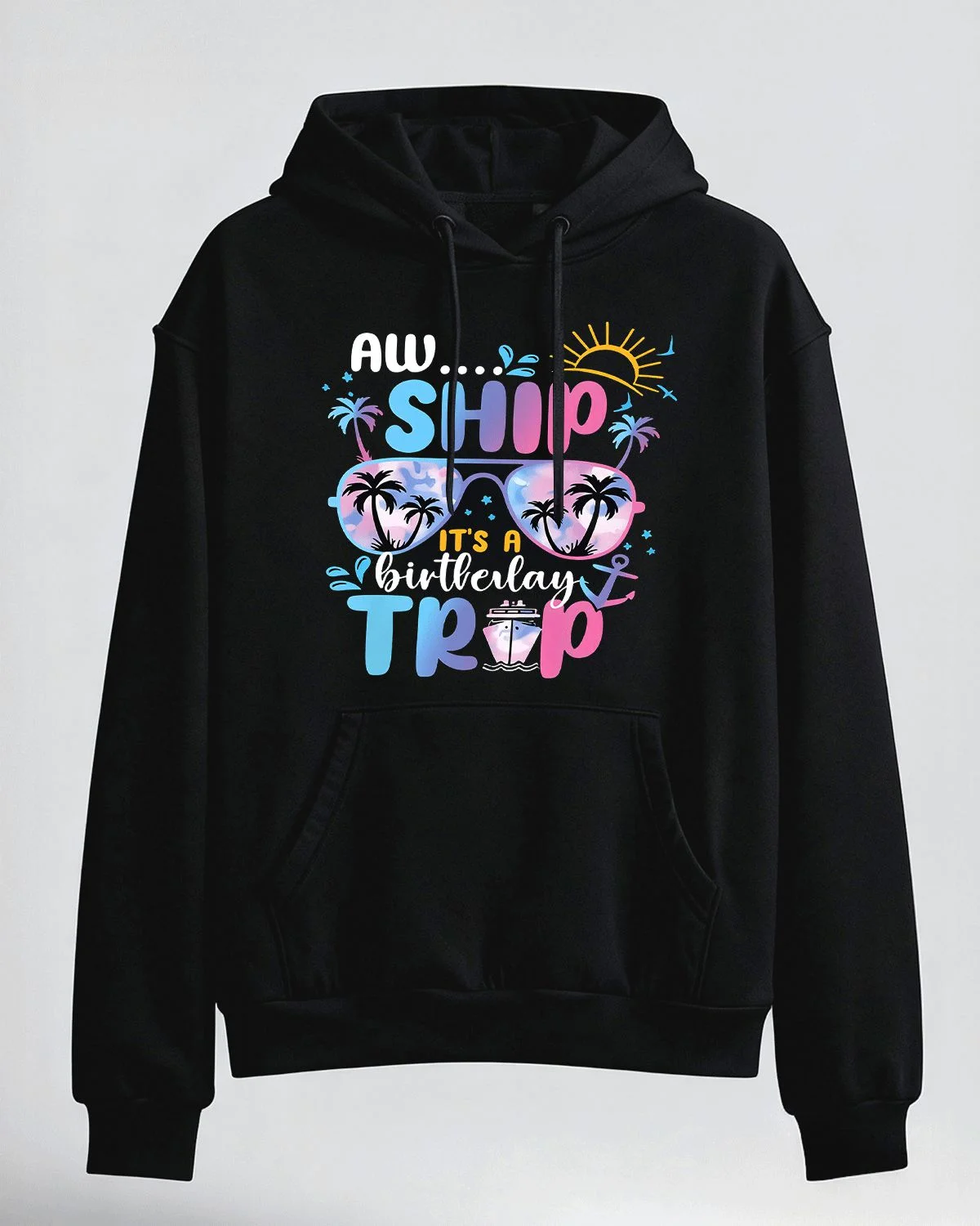 Aw Ship Mom Birthday Trip Cozy Graphic Hoodie for Men and Women - Casual Tropical, Long Sleeve, Soft Fabric, Comfortable Fit
