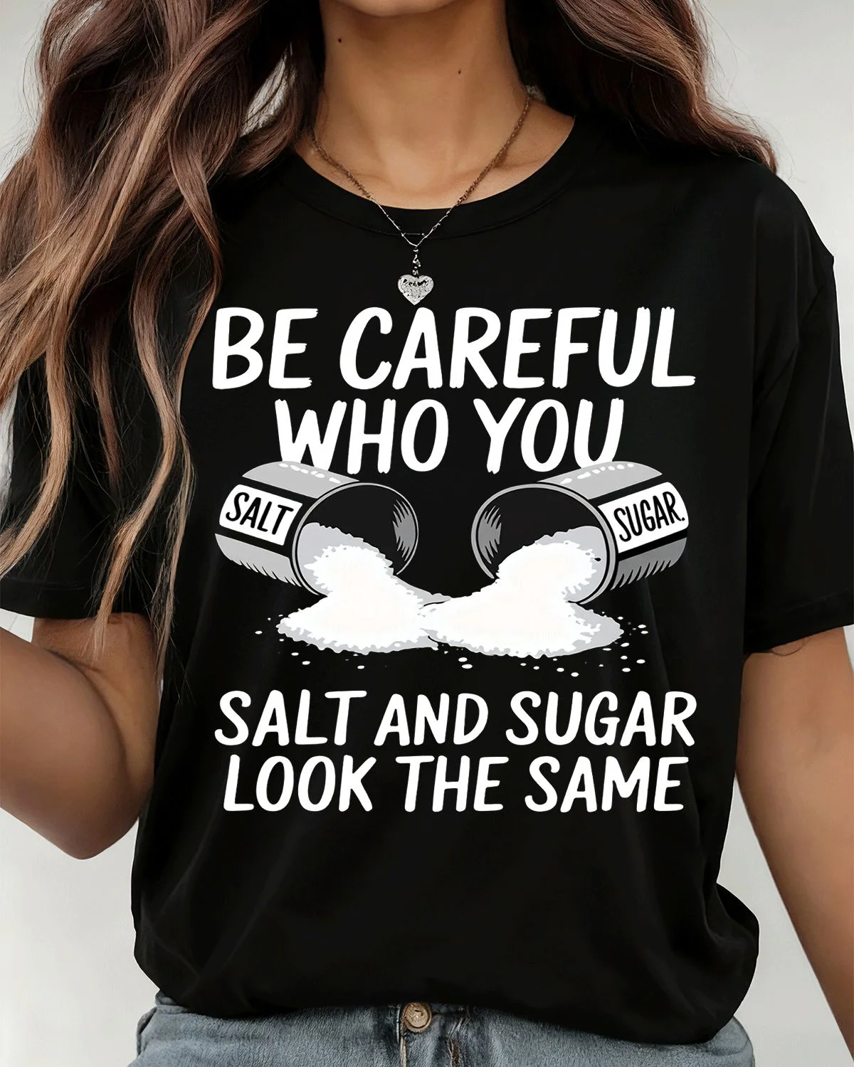 Be Careful Who You Salt and Sugar Summer Cotton Graphic T Shirt-Casual Funny,Short Sleeve,Soft Fabric,Comfortable Fit