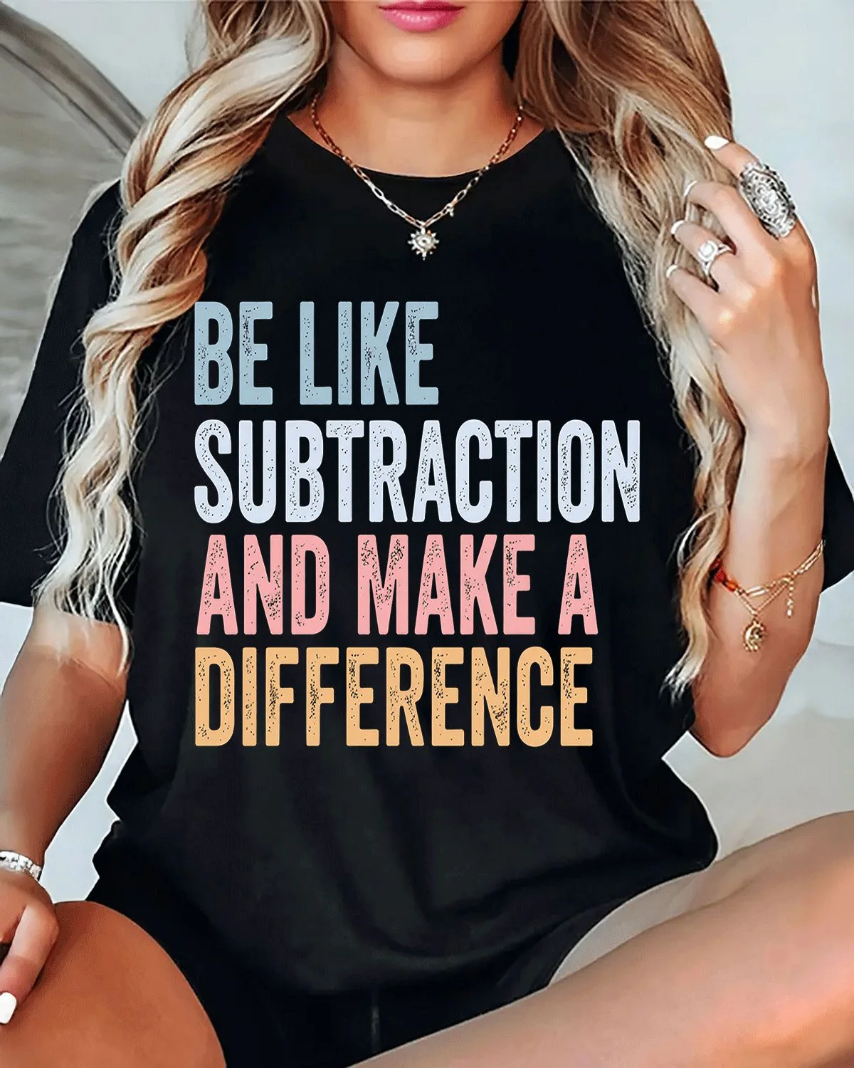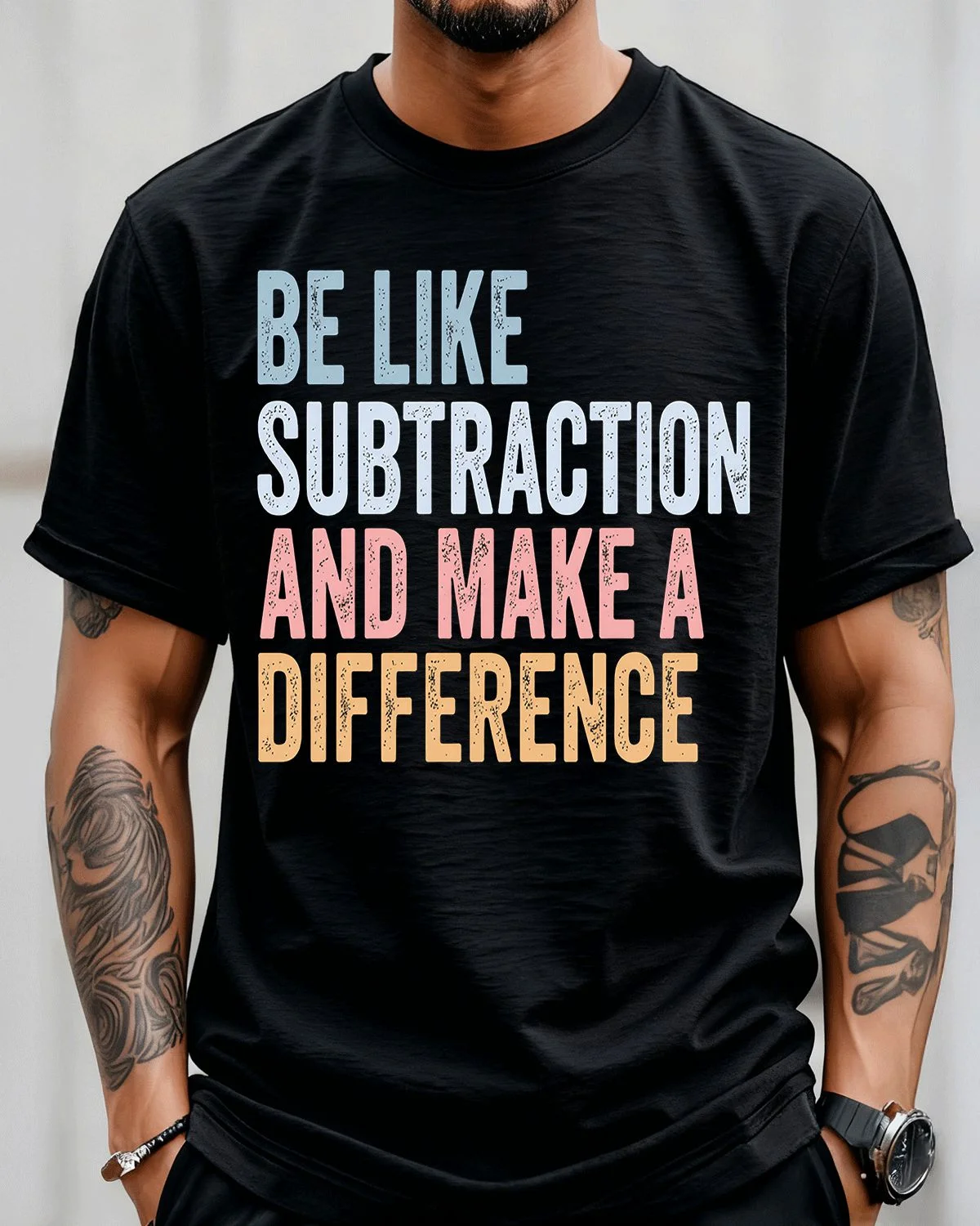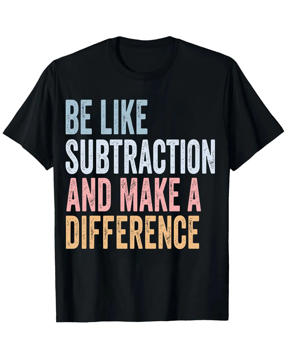 Be Like Subtraction and Make a Difference Summer Cotton Graphic T Shirt-Casual Vintage,Short Sleeve,Soft Fabric,Comfortable Fit