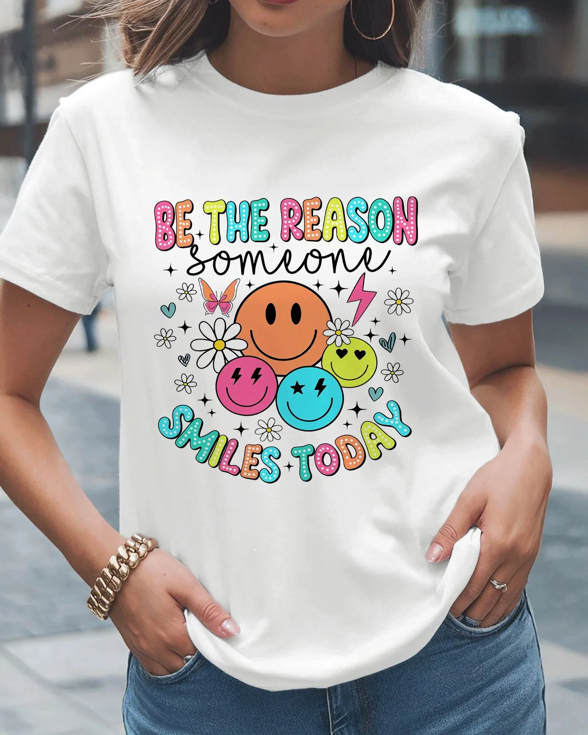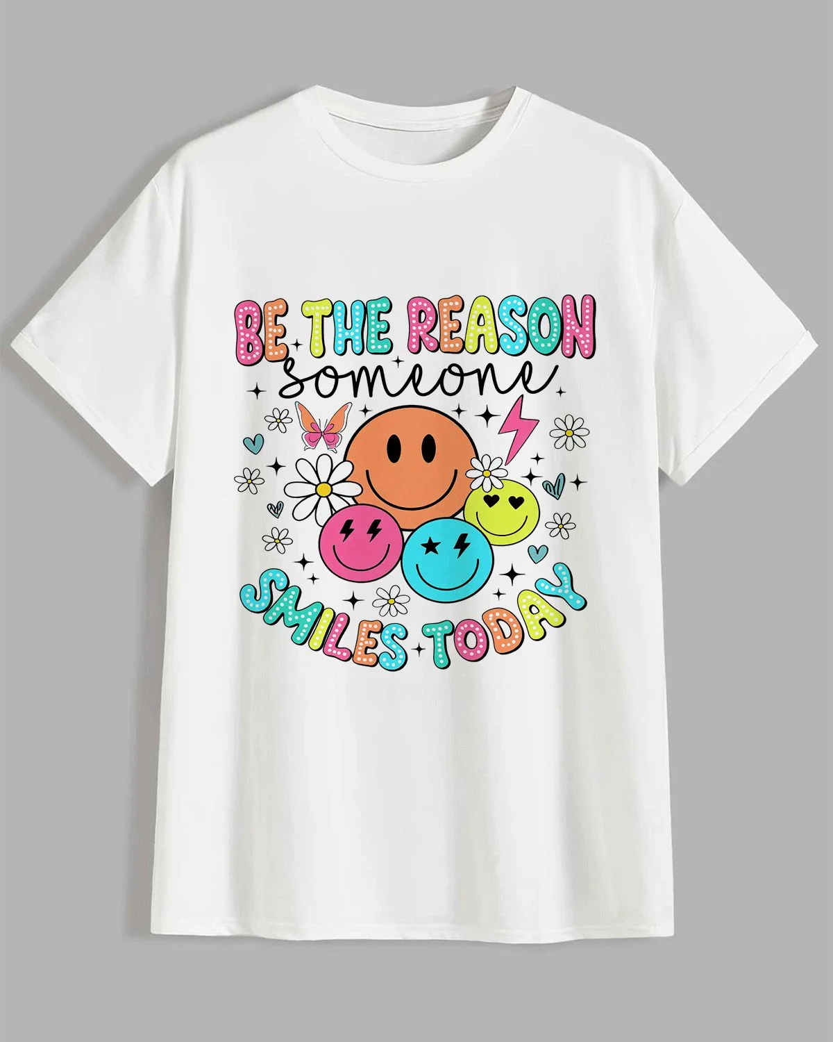 Be The Reason Smiles Today Summer Cotton Graphic T Shirt - Casual Retro,Short Sleeve,Soft Fabric,Comfortable Fit