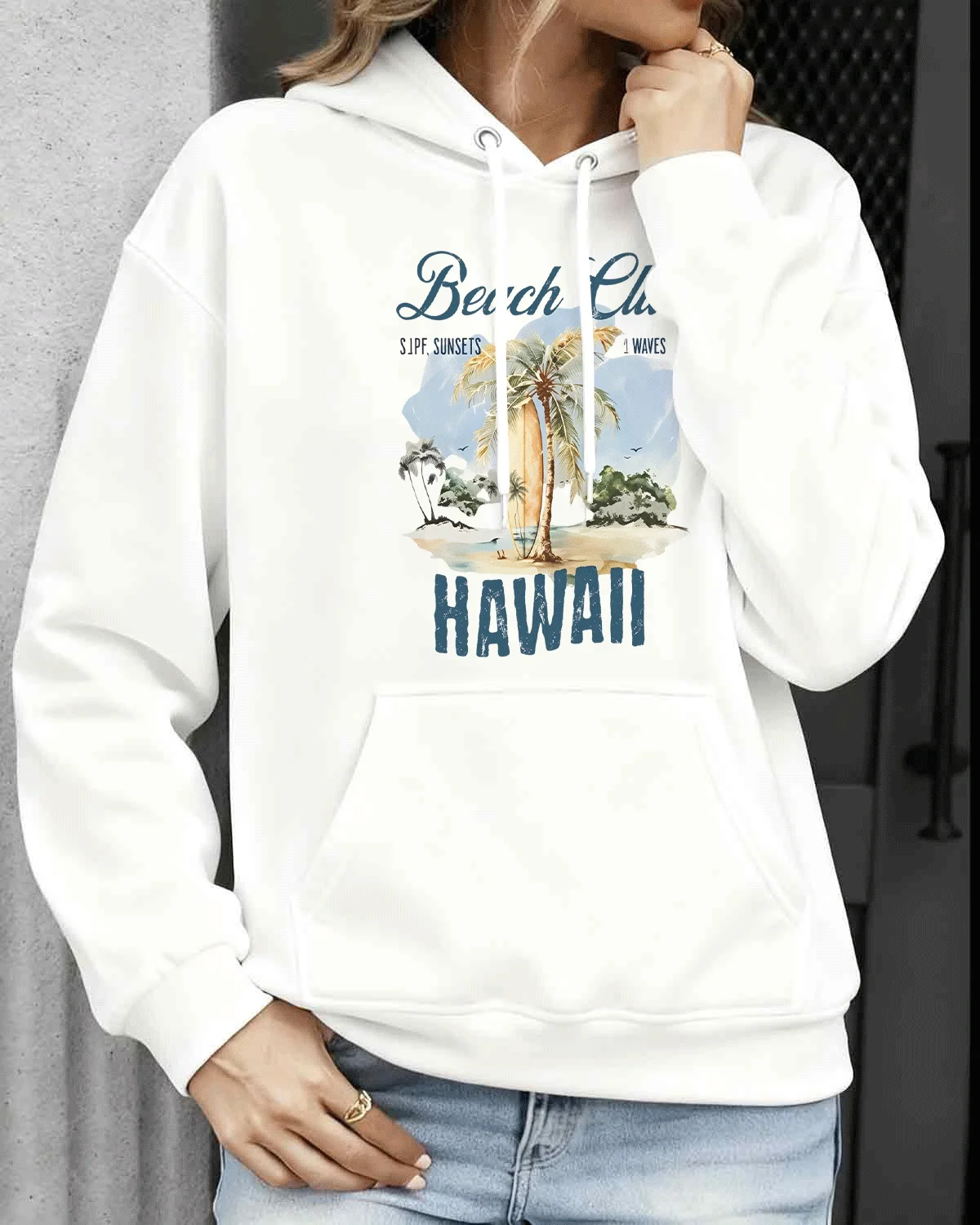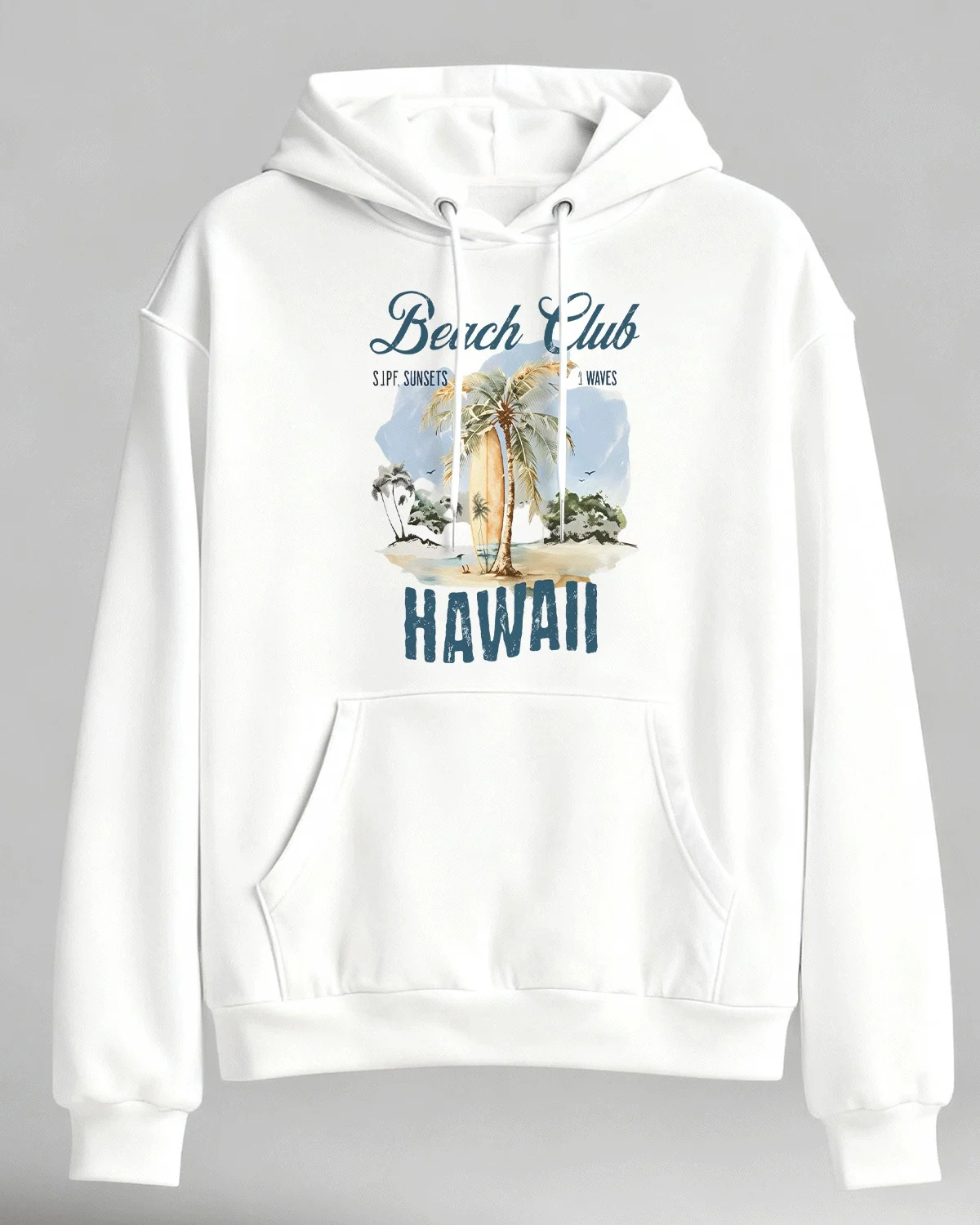 Beach Club Hawaii Surf Sunsets and Waves Cozy Cotton Graphic Hoodie-Casual Vintage,Long Sleeves,Soft Fabric,Comfortable Fit