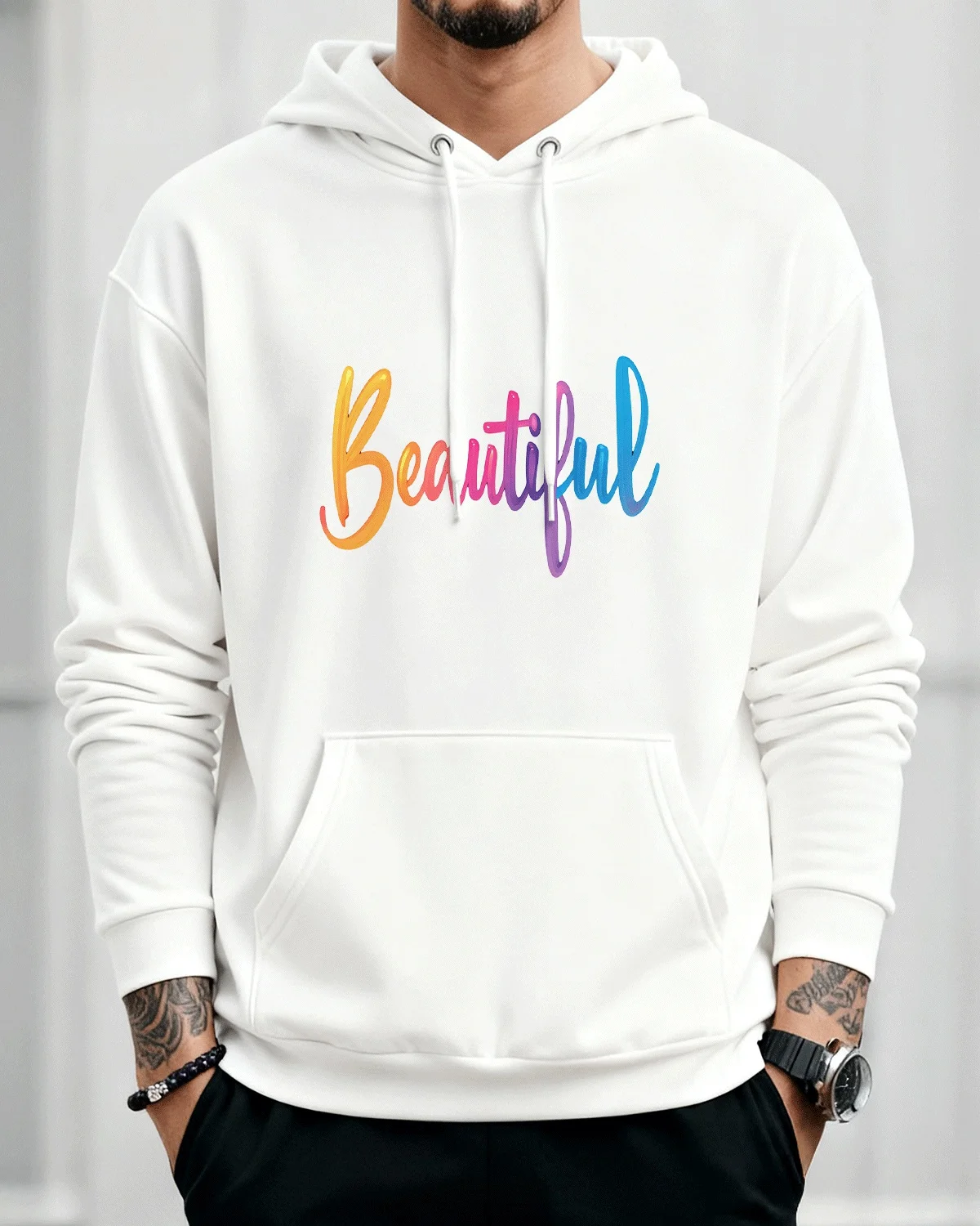 Be a Decent Human Rainbow Hearts Cozy Cotton Graphic Hoodie with Pocket-Casual Vintage,Long Sleeve,Soft Fabric,Comfortable Fit