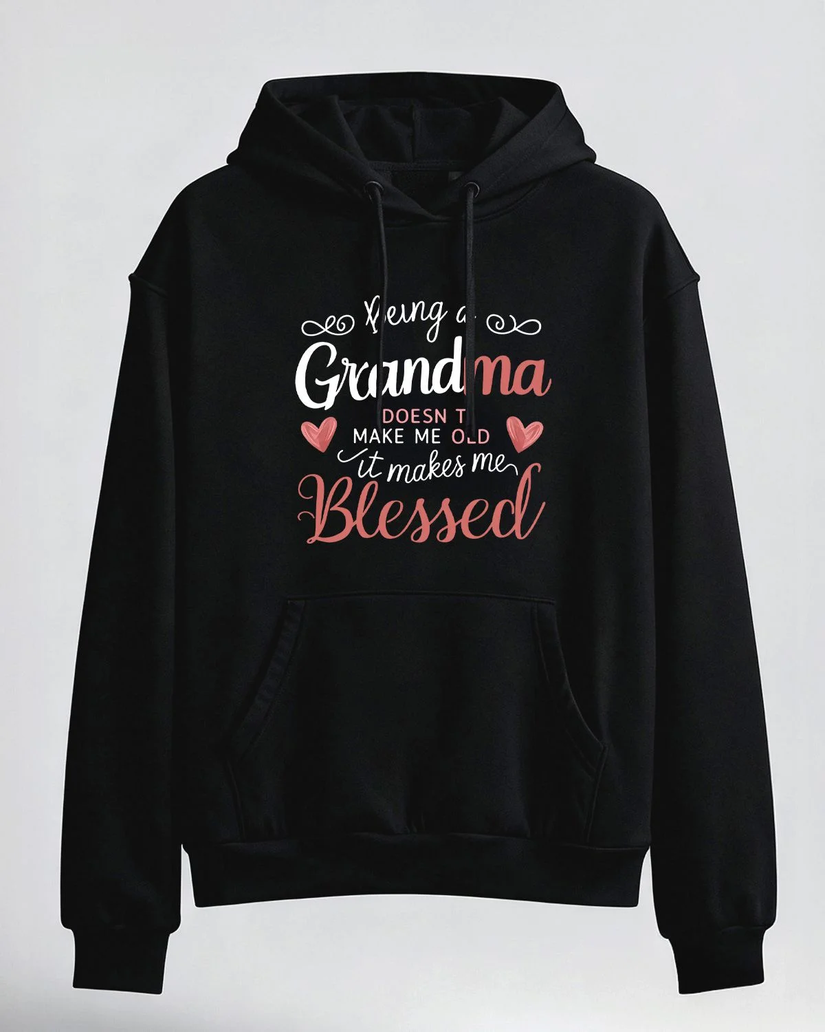 Being a Grandma Blessed Cozy Cotton Graphic Hoodie with Pocket-Casual Vintage,Long Sleeve,Soft Fabric,Comfortable Fit