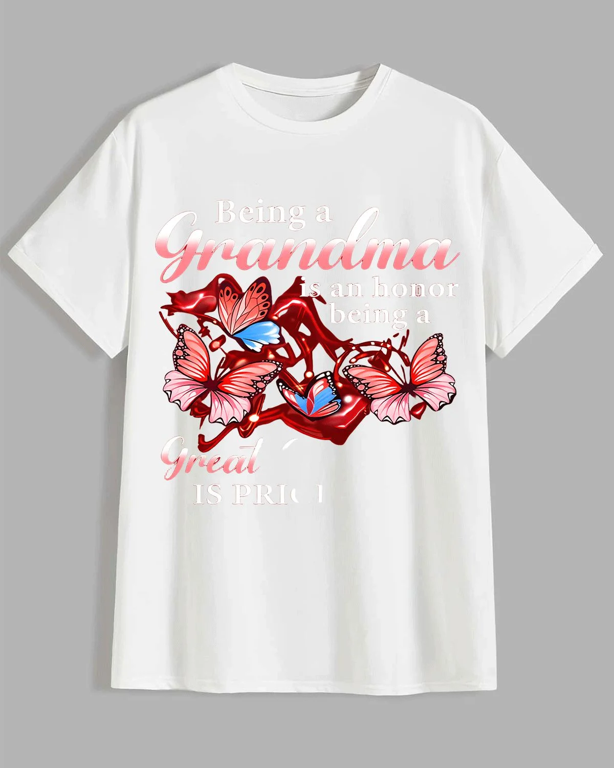Being a Grandma Mom Honor Butterflies Summer Cotton Graphic T Shirt - Vintage Artistic, Short Sleeve, Soft Fabric, Comfortable Fit