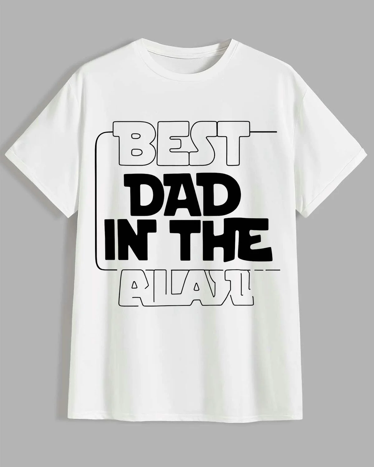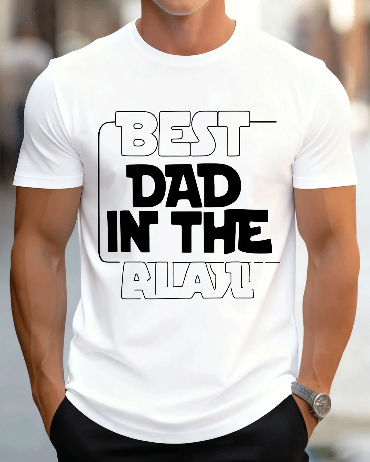 Best Dad in the Galaxy Summer Cotton Graphic T Shirt - Retro Cool, Short Sleeve, Soft Fabric, Comfortable Fit