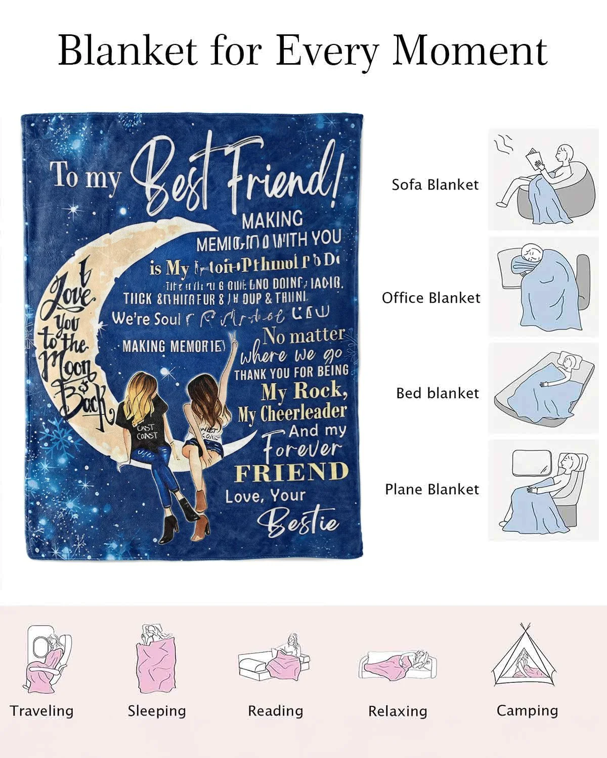 Best Friend Love and Appreciation Letter Cozy Flannel Blanket-Cute,Classic,Super Soft,Warm,Lightweight,For Couch,For Bed