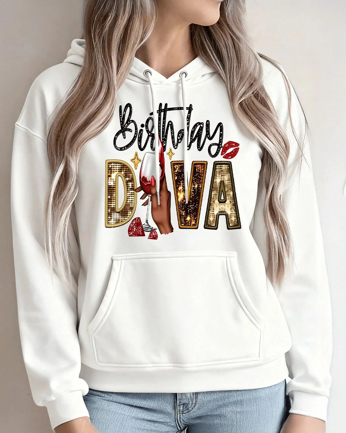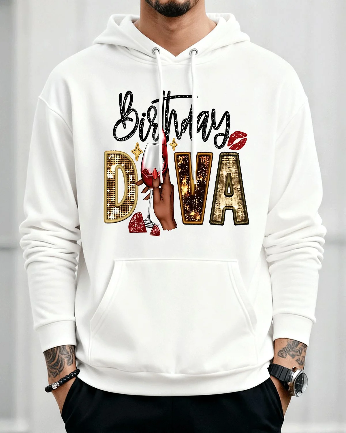 Birthday Diva Wine Glass Cozy Graphic Hoodie for Men and Women - Trendy Chic, Long Sleeve, Soft Fabric, Comfortable Fit