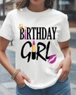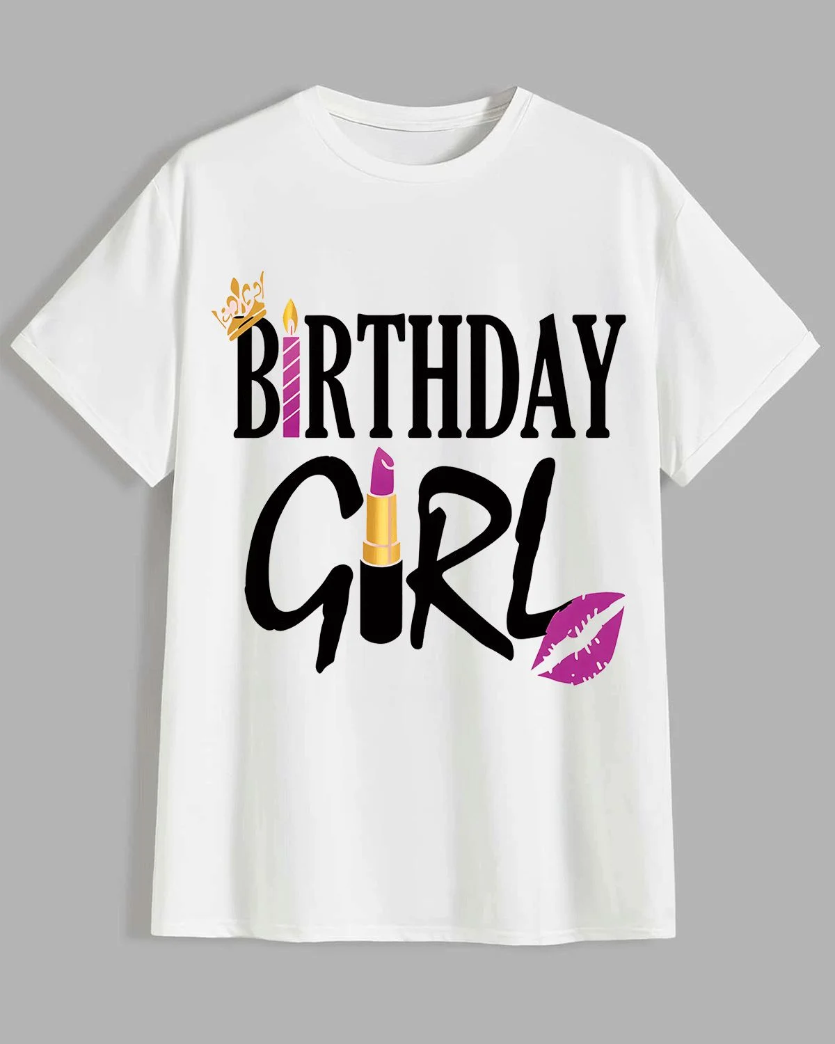 Birthday Girl Crown Candle Lipstick Summer Cotton Graphic T Shirt - Casual Chic, Short Sleeve, Soft Fabric, Comfortable Fit