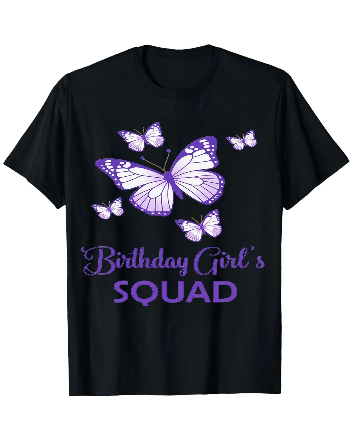 Birthday Girl's Squad Mom Butterfly Summer Cotton Graphic T Shirt - Casual Chic, Short Sleeve, Soft Fabric, Comfortable Fit