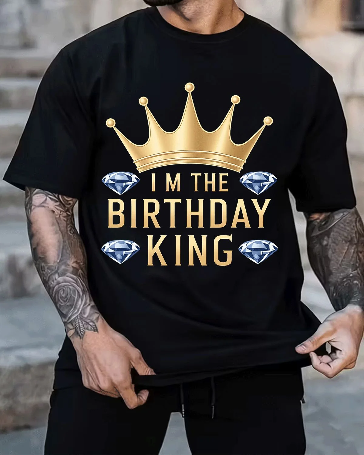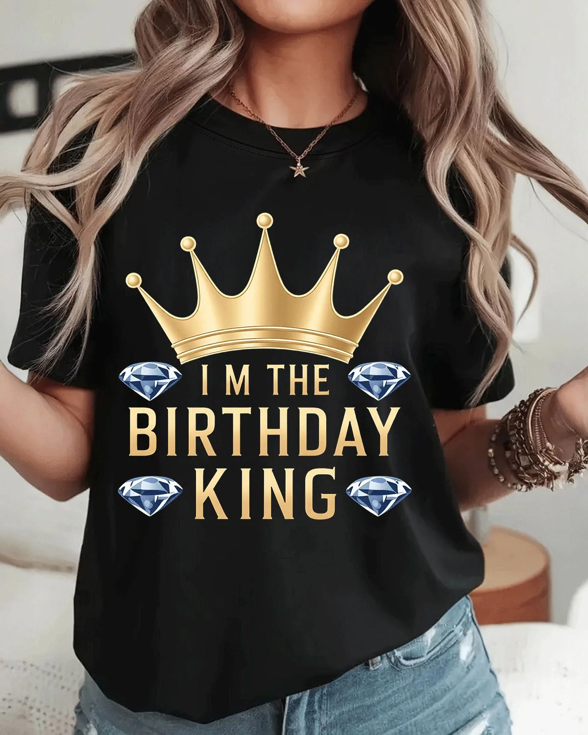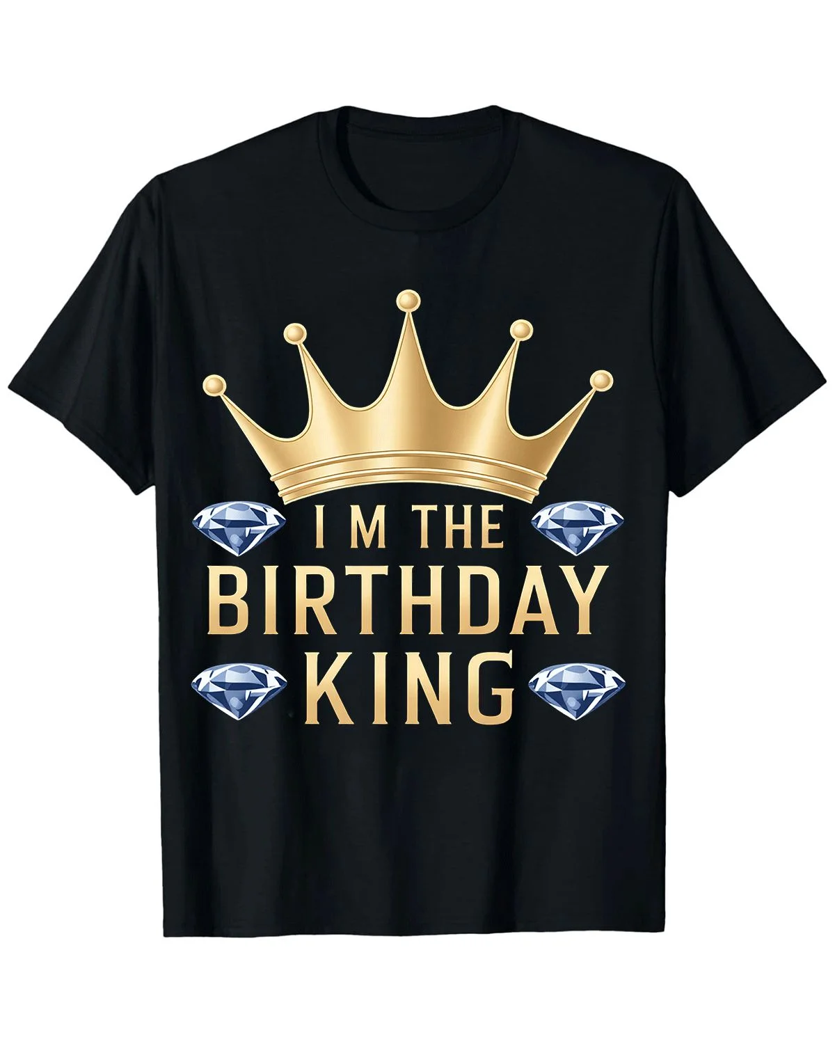 Birthday King Crown and Diamonds Summer Cotton Graphic T Shirt - Casual Classic, Short Sleeve, Soft Fabric, Comfortable Fit