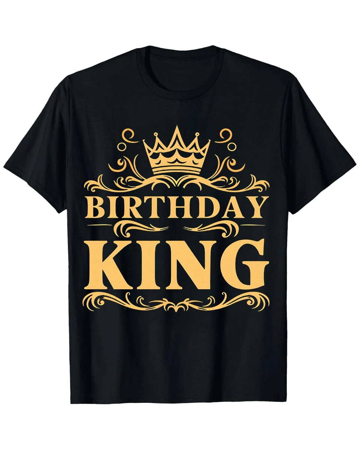 Birthday King Crown Graphic Summer Cotton Graphic T Shirt - Casual Classic, Short Sleeve, Soft Fabric, Comfortable Fit