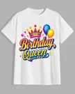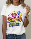 Birthday Queen Crown and Balloons Summer Cotton Graphic T Shirt - Casual Trendy, Short Sleeve, Soft Fabric, Comfortable Fit