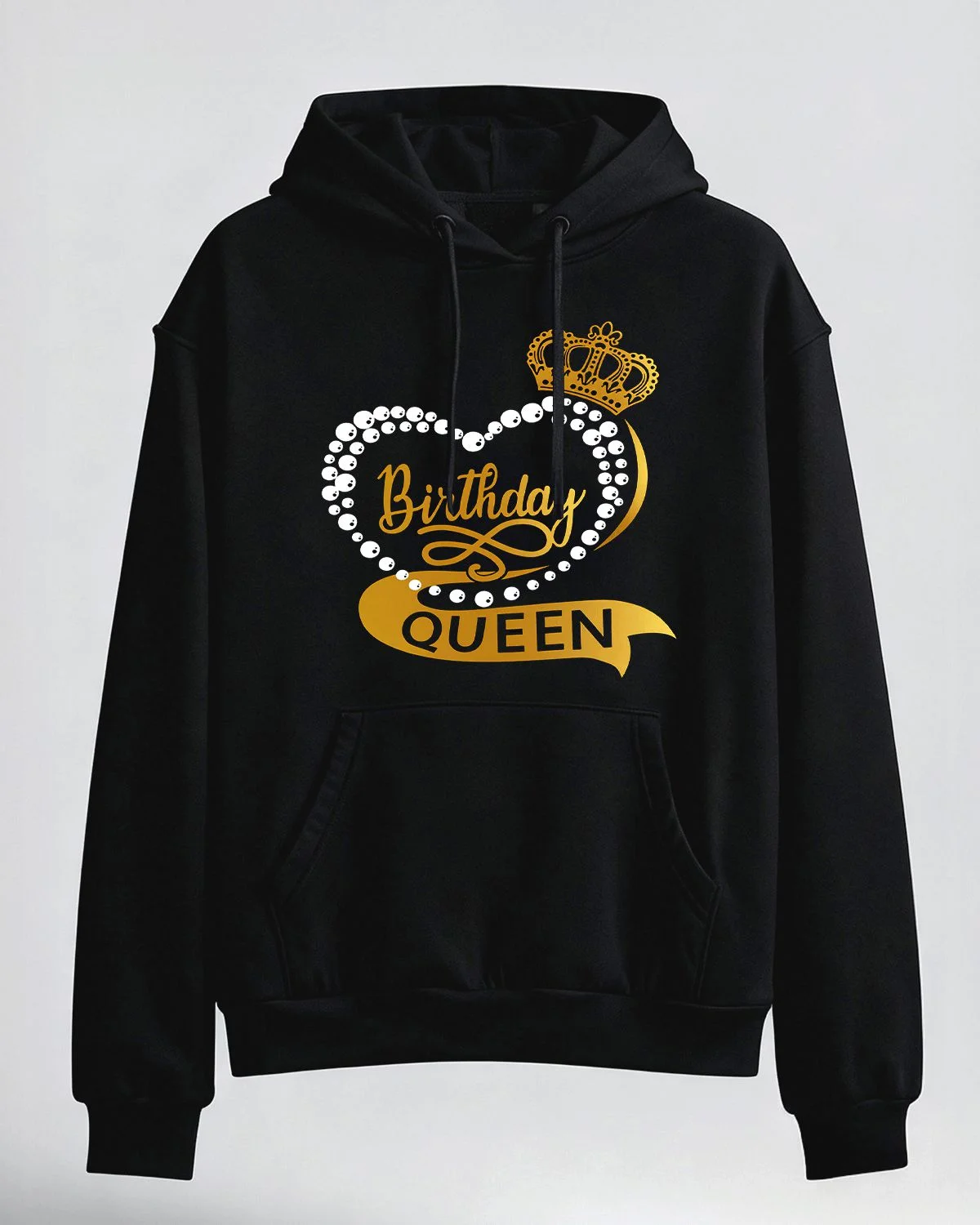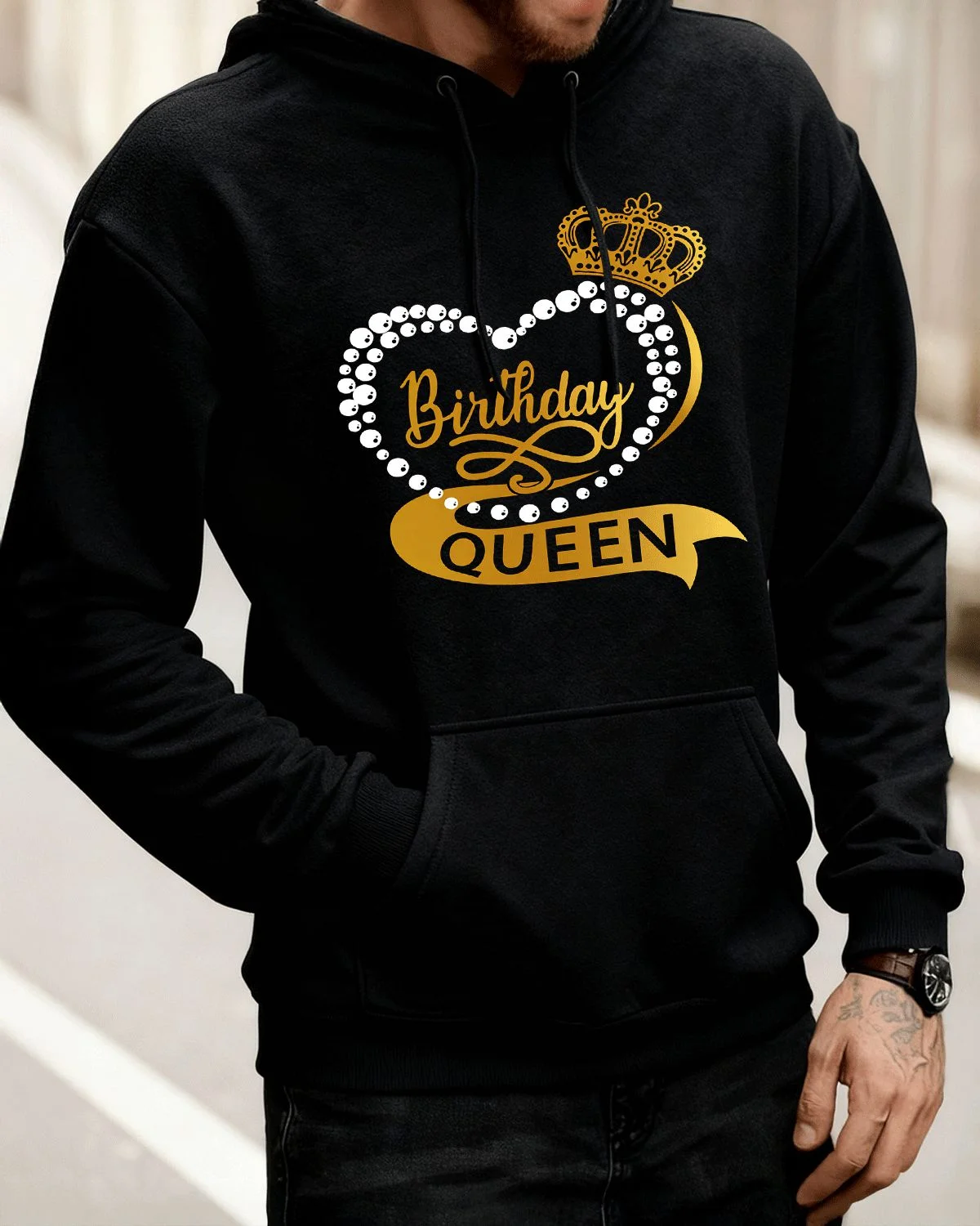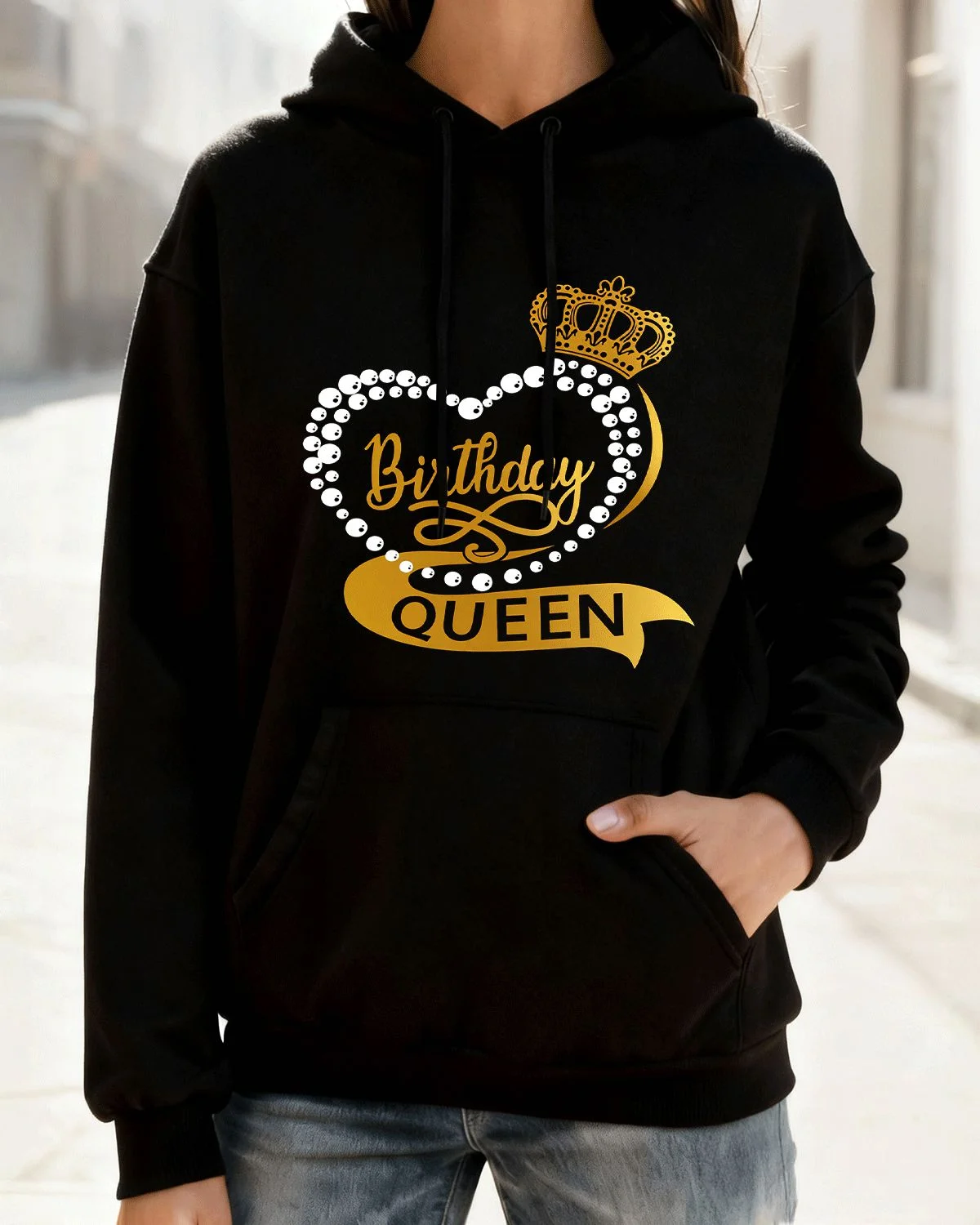 Birthday Queen Crown and Pearls Cozy Graphic Hoodie for Men and Women - Casual Chic, Long Sleeve, Soft Fabric, Comfortable Fit
