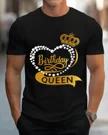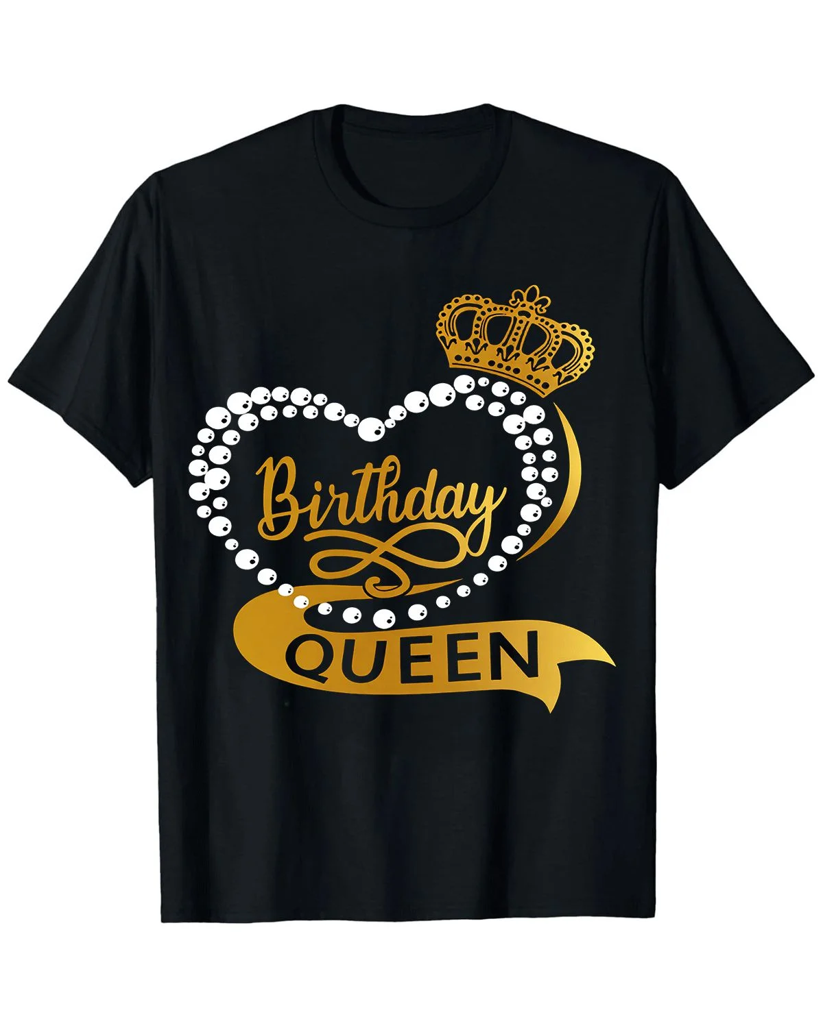 Birthday Queen Crown and Pearls Summer Cotton Graphic T Shirt - Casual Chic, Short Sleeve, Soft Fabric, Comfortable Fit