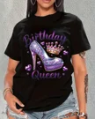 Birthday Queen High Heel and Crown Summer Cotton Graphic T Shirt - Chic Trendy, Short Sleeve, Soft Fabric, Comfortable Fit