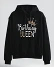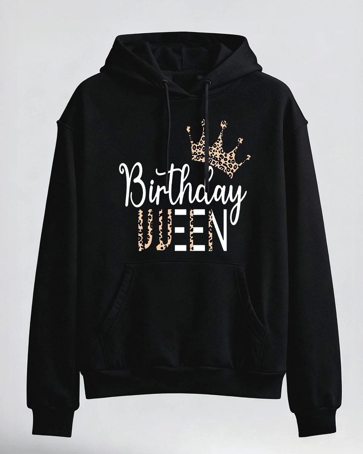 Birthday Queen Leopard Crown Cozy Graphic Hoodie for Men and Women - Trendy Chic, Long Sleeve, Soft Fabric, Comfortable Fit