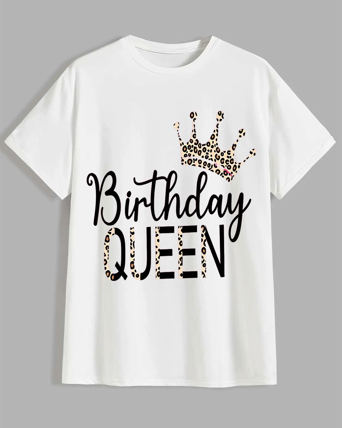 Birthday Queen Leopard Crown Summer Cotton Graphic T Shirt - Trendy Chic, Short Sleeve, Soft Fabric, Comfortable Fit