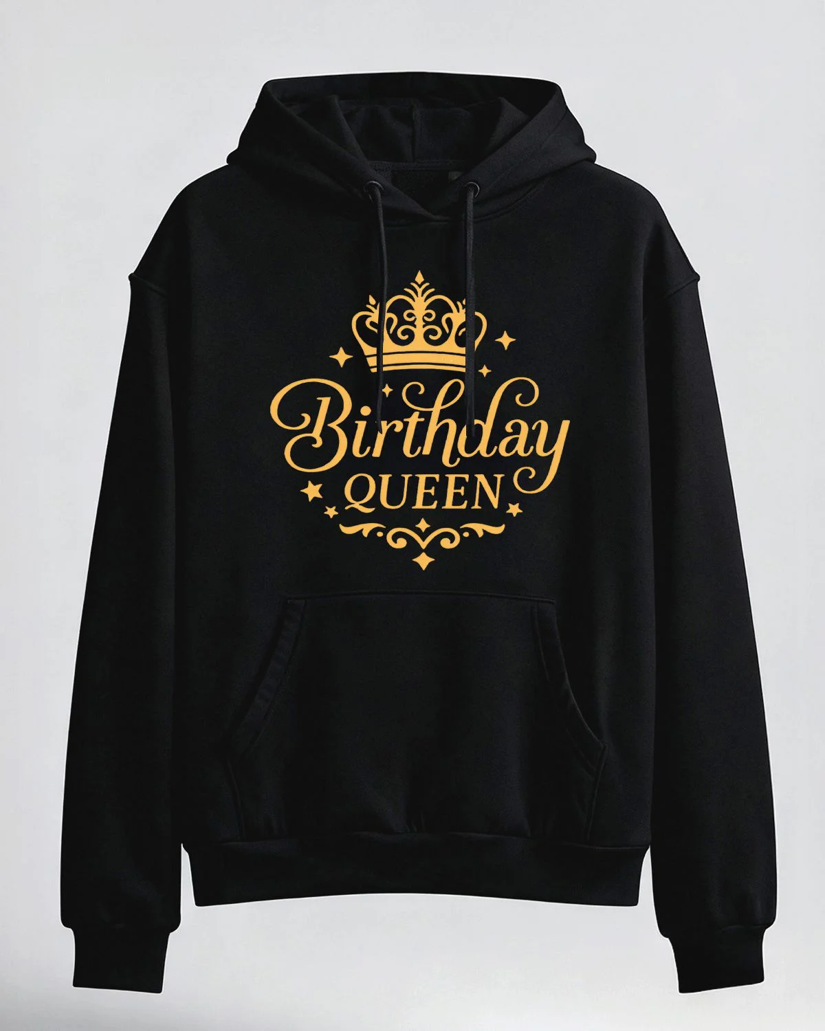 Birthday Queen Mom Cozy Graphic Hoodie for Men and Women - Casual Chic, Long Sleeve, Soft Fabric, Comfortable Fit