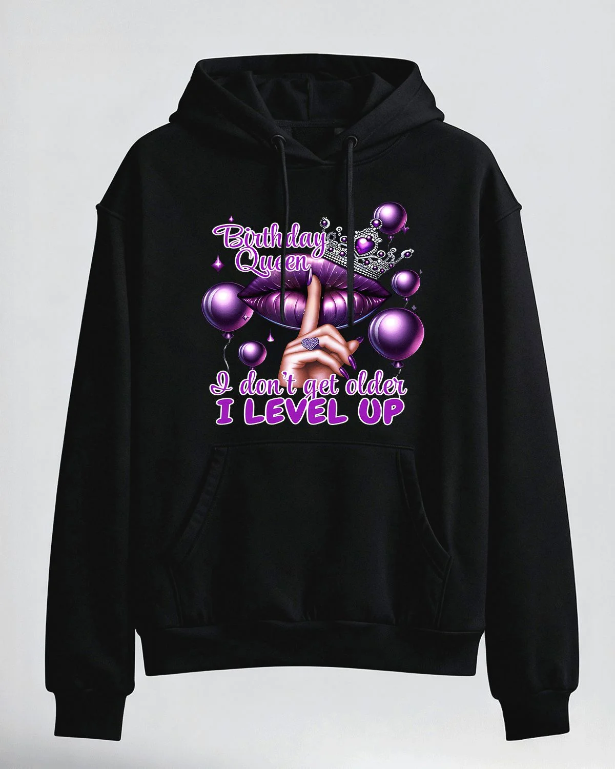 Birthday Queen Mom Level Up Cozy Graphic Hoodie for Men and Women - Trendy Chic, Long Sleeve, Soft Fabric, Comfortable Fit
