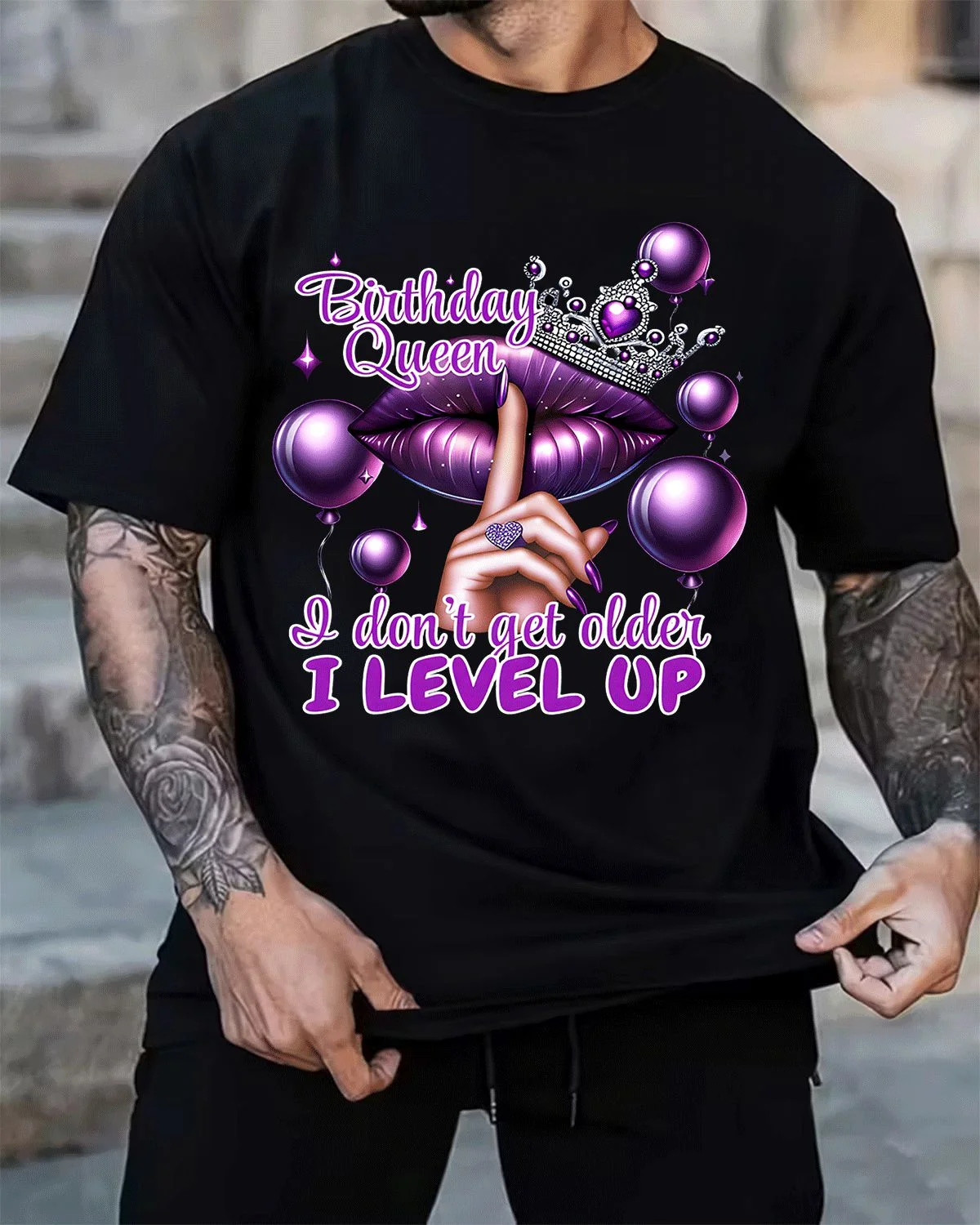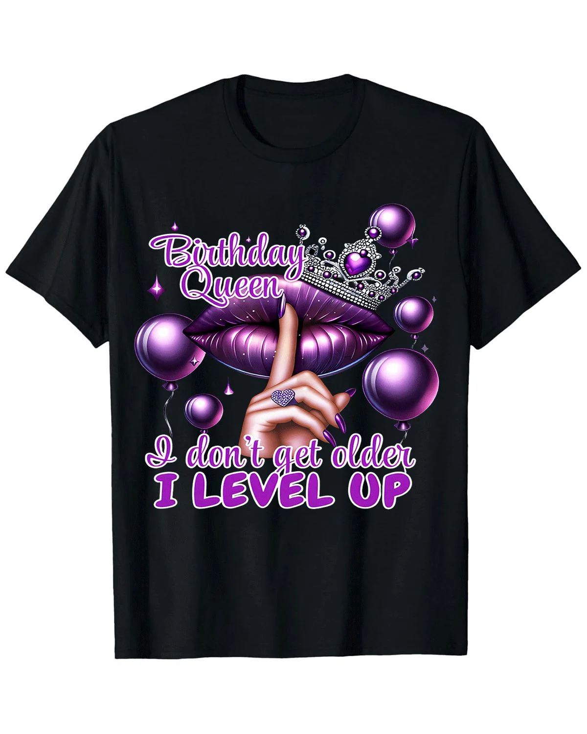 Birthday Queen Mom Level Up Summer Cotton Graphic T Shirt - Trendy Chic, Short Sleeve, Soft Fabric, Comfortable Fit