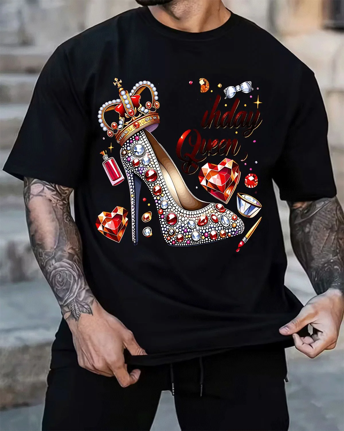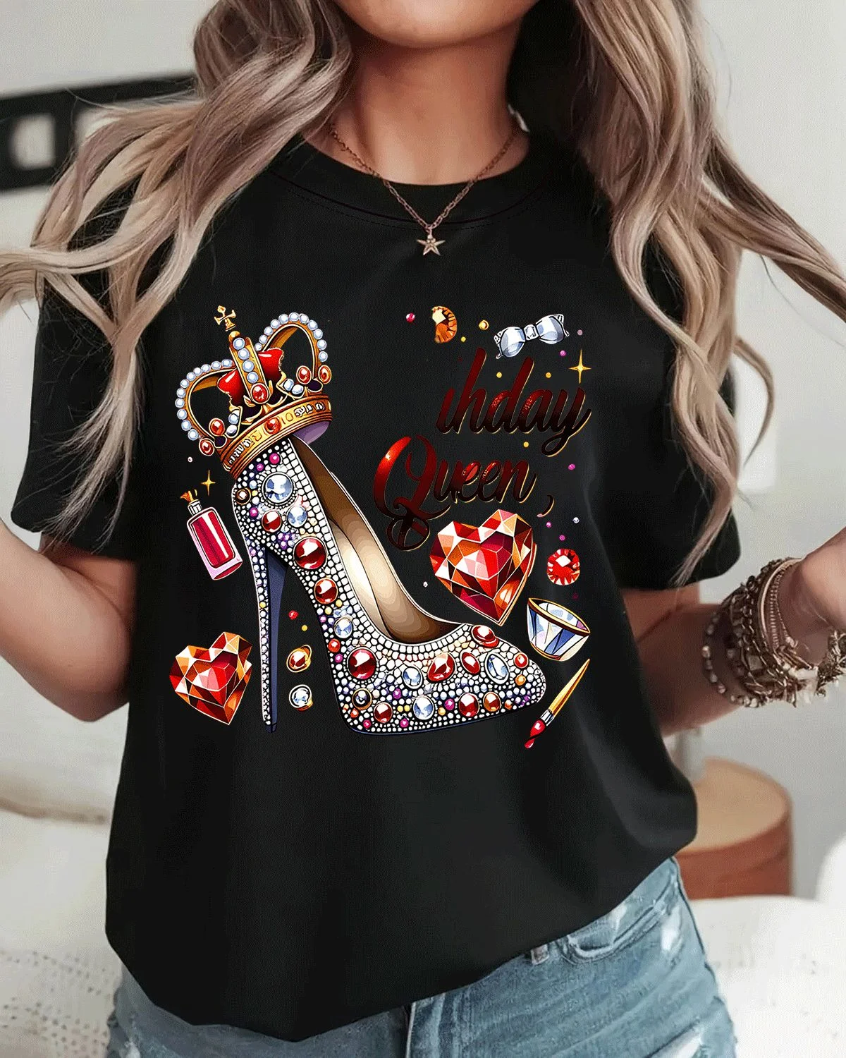 Birthday Queen Mom Summer Cotton Graphic T Shirt - Chic Trendy, Short Sleeve, Soft Fabric, Comfortable Fit