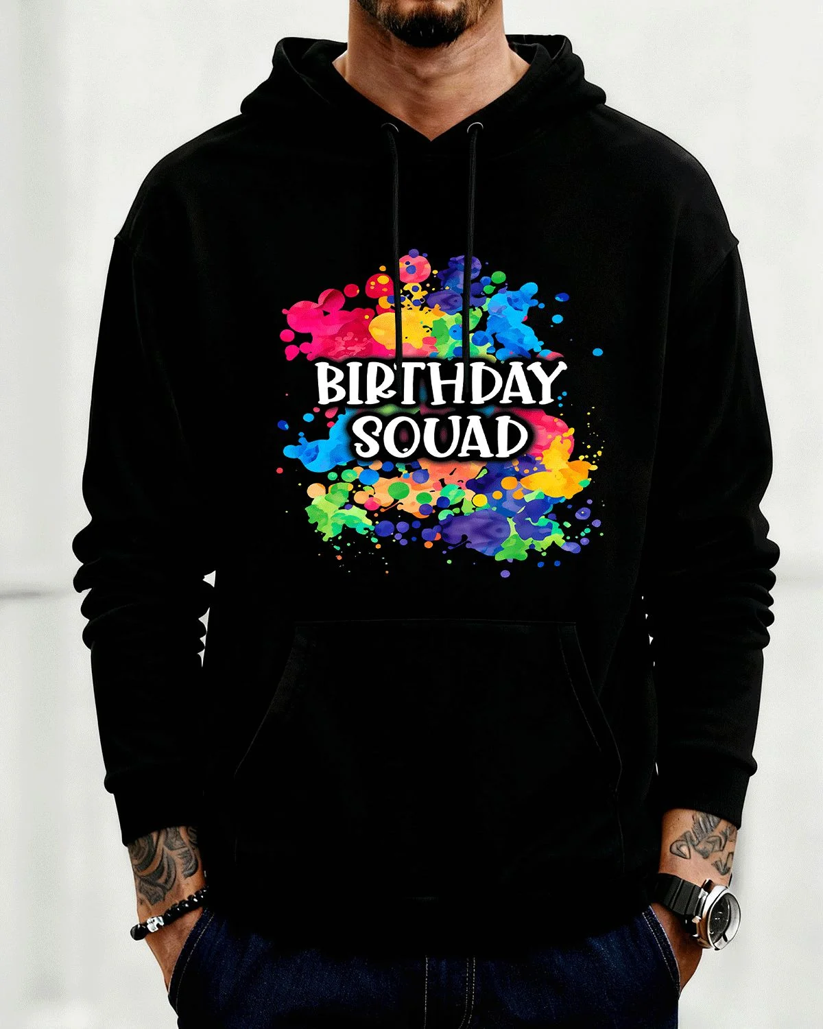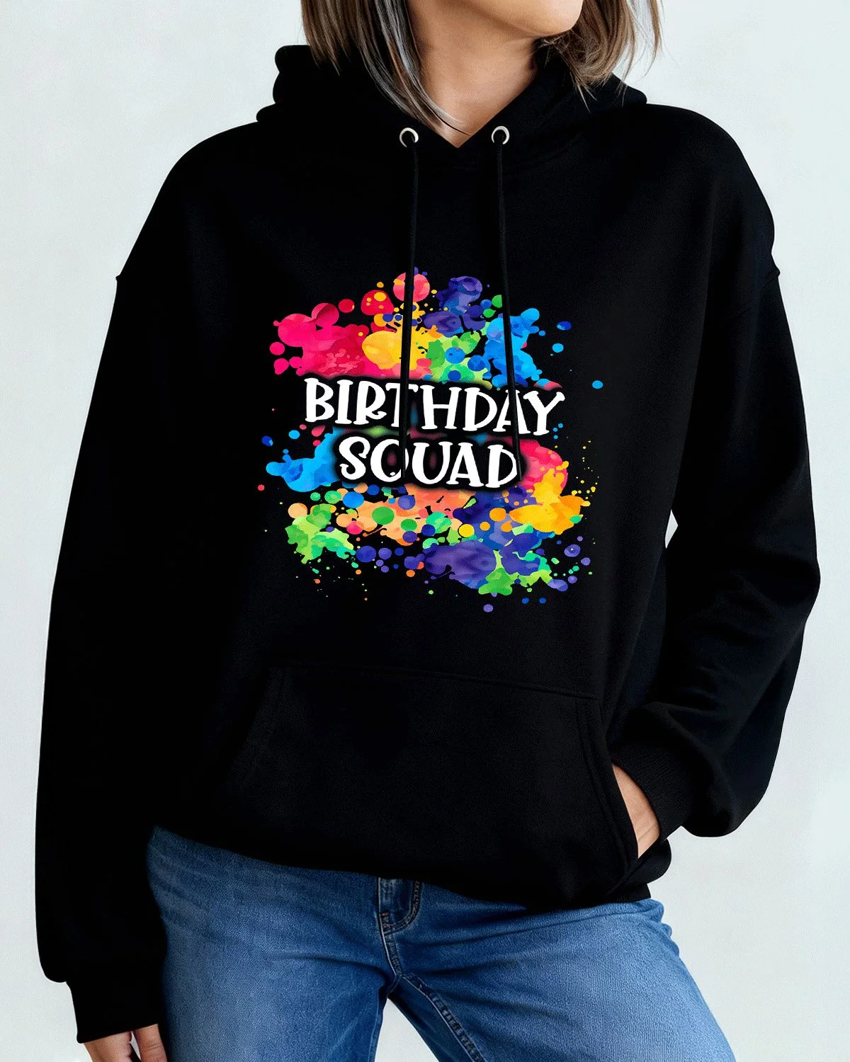 Birthday Squad Color Splash Cozy Graphic Hoodie for Men and Women - Casual Graphic, Long Sleeve, Soft Fabric, Comfortable Fit