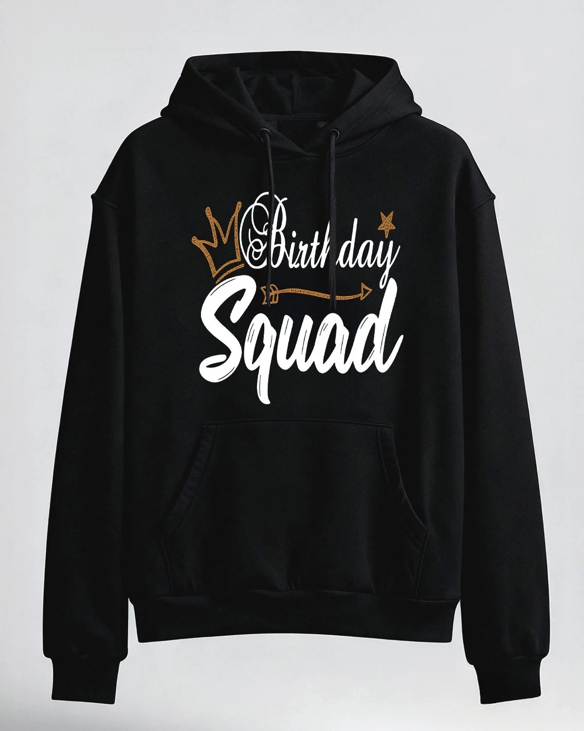 Birthday Squad Crown and Arrow Cozy Graphic Hoodie for Men and Women - Casual Trendy, Long Sleeve, Soft Fabric, Comfortable Fit