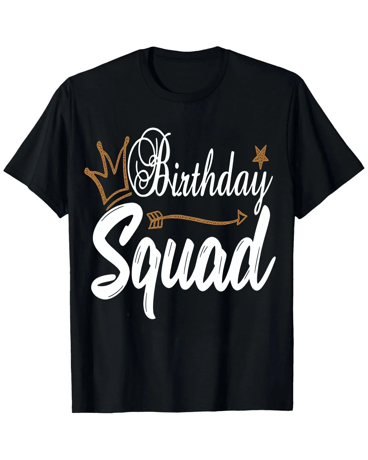 Birthday Squad Crown and Arrow Summer Cotton Graphic T Shirt - Casual Trendy, Short Sleeve, Soft Fabric, Comfortable Fit