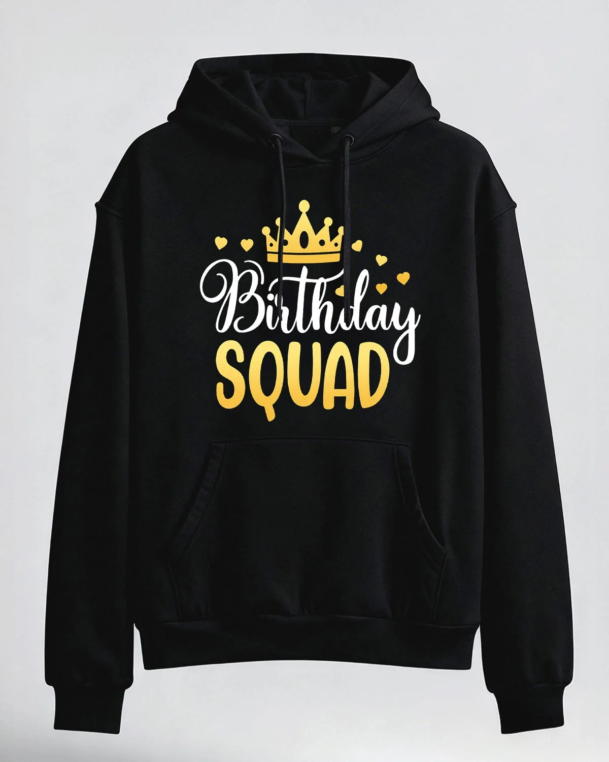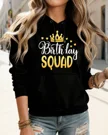 Birthday Squad Crown and Hearts Cozy Graphic Hoodie for Men and Women - Casual Trendy, Long Sleeve, Soft Fabric, Comfortable Fit