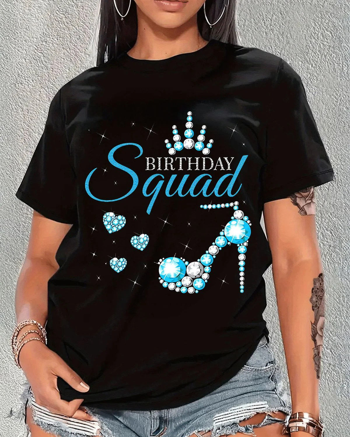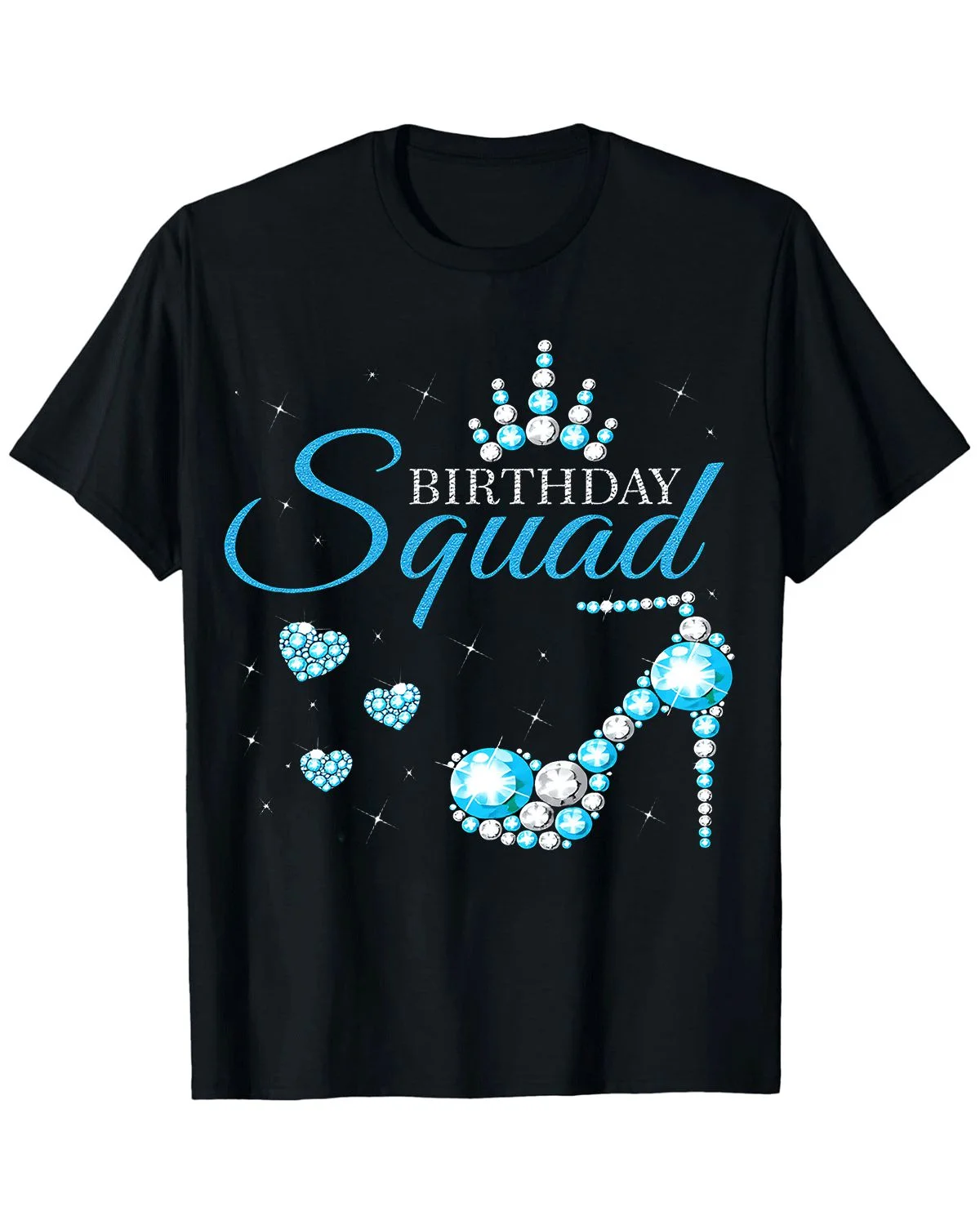 Birthday Squad Crown and Heel Summer Cotton Graphic T Shirt - Trendy Chic, Short Sleeve, Soft Fabric, Comfortable Fit