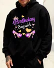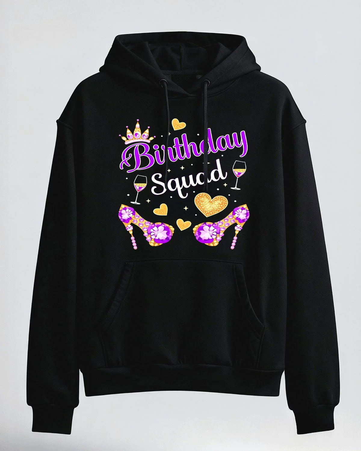Birthday Squad Crown Heels and Wine Cozy Graphic Hoodie for Men and Women - Trendy Chic, Long Sleeve, Soft Fabric, Comfortable Fit