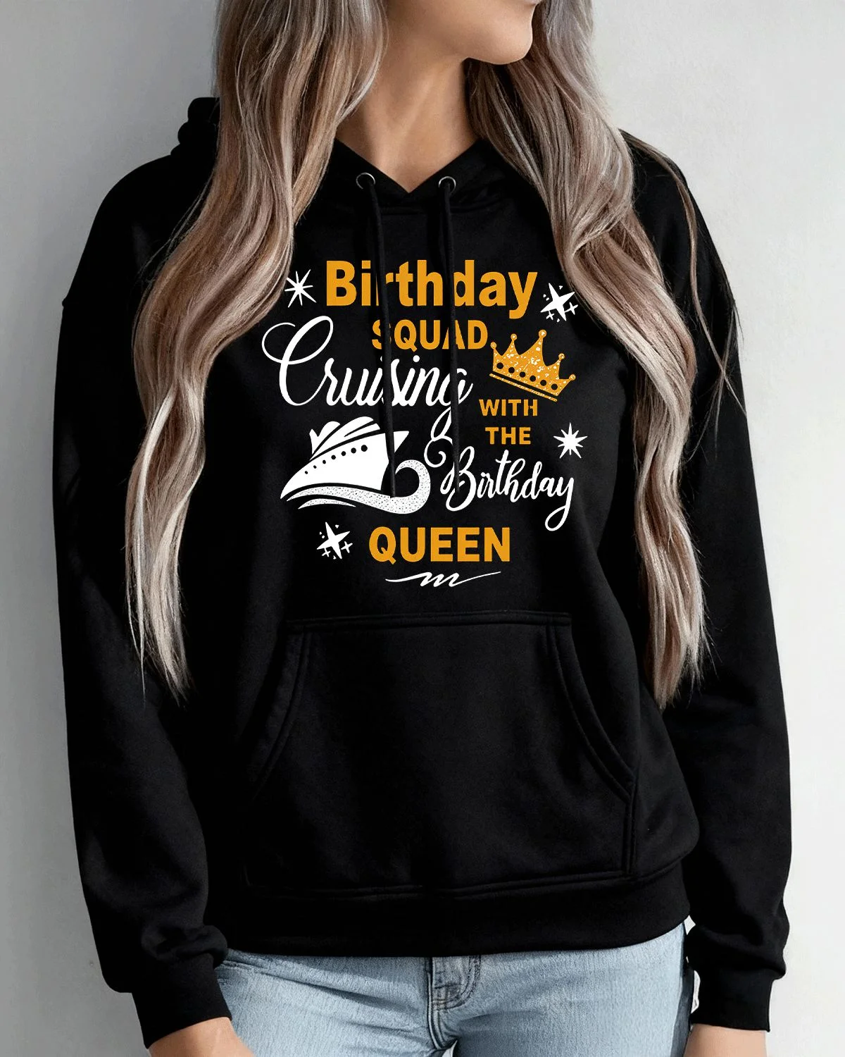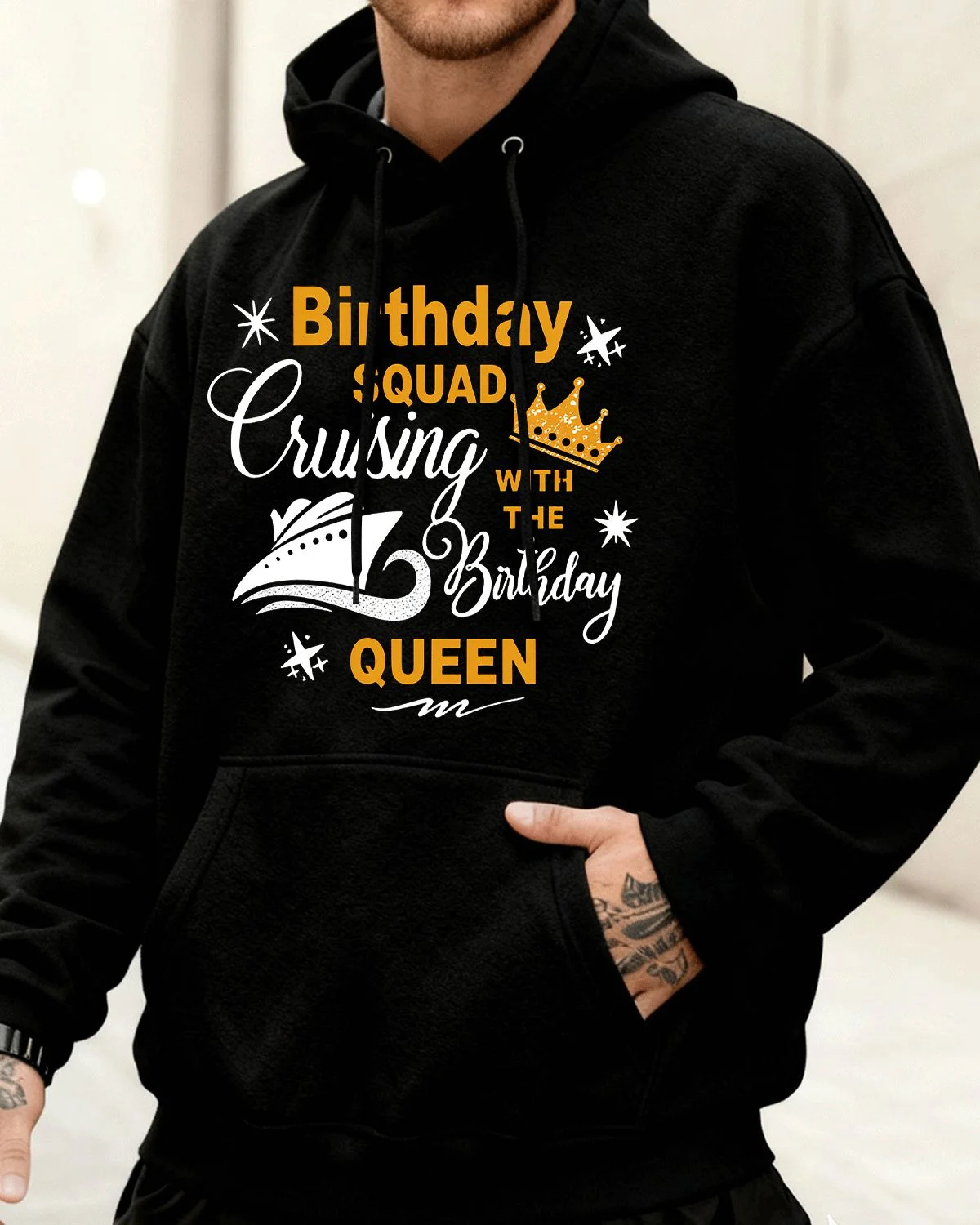 Birthday Squad Cruising with the Birthday Queen Cozy Graphic Hoodie for Men and Women - Casual Cool, Long Sleeve, Soft Fabric, Comfortable Fit