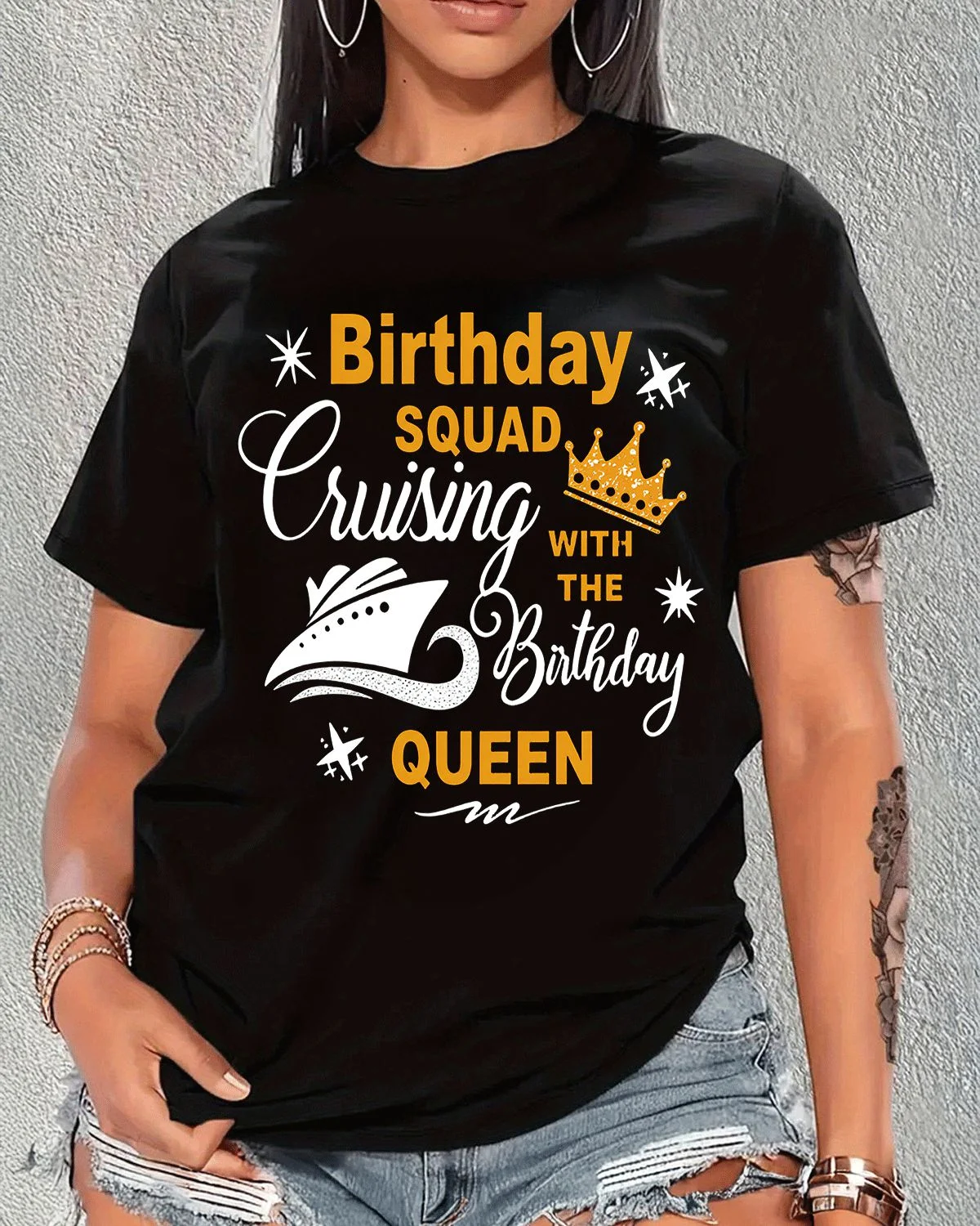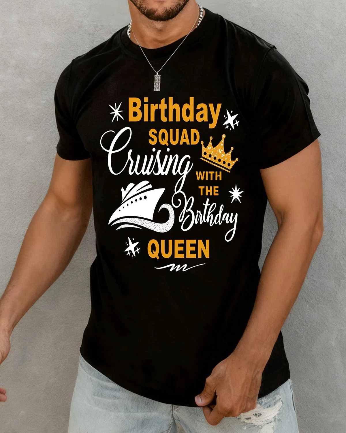 Birthday Squad Cruising with the Birthday Queen Summer Cotton Graphic T Shirt - Casual Cool, Short Sleeve, Soft Fabric, Comfortable Fit