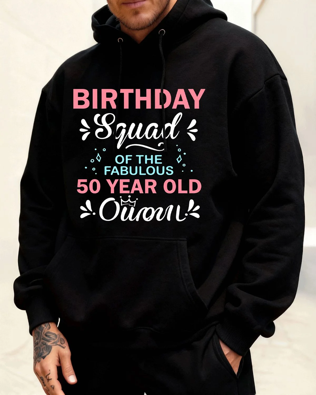 Birthday Squad Fabulous 50 Year Old Queen Cozy Graphic Hoodie for Men and Women - Casual Trendy, Long Sleeve, Soft Fabric, Comfortable Fit