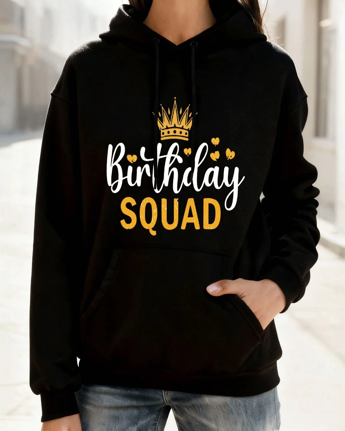 Birthday Squad Mom Crown Cozy Graphic Hoodie for Men and Women - Casual Trendy, Long Sleeve, Soft Fabric, Comfortable Fit