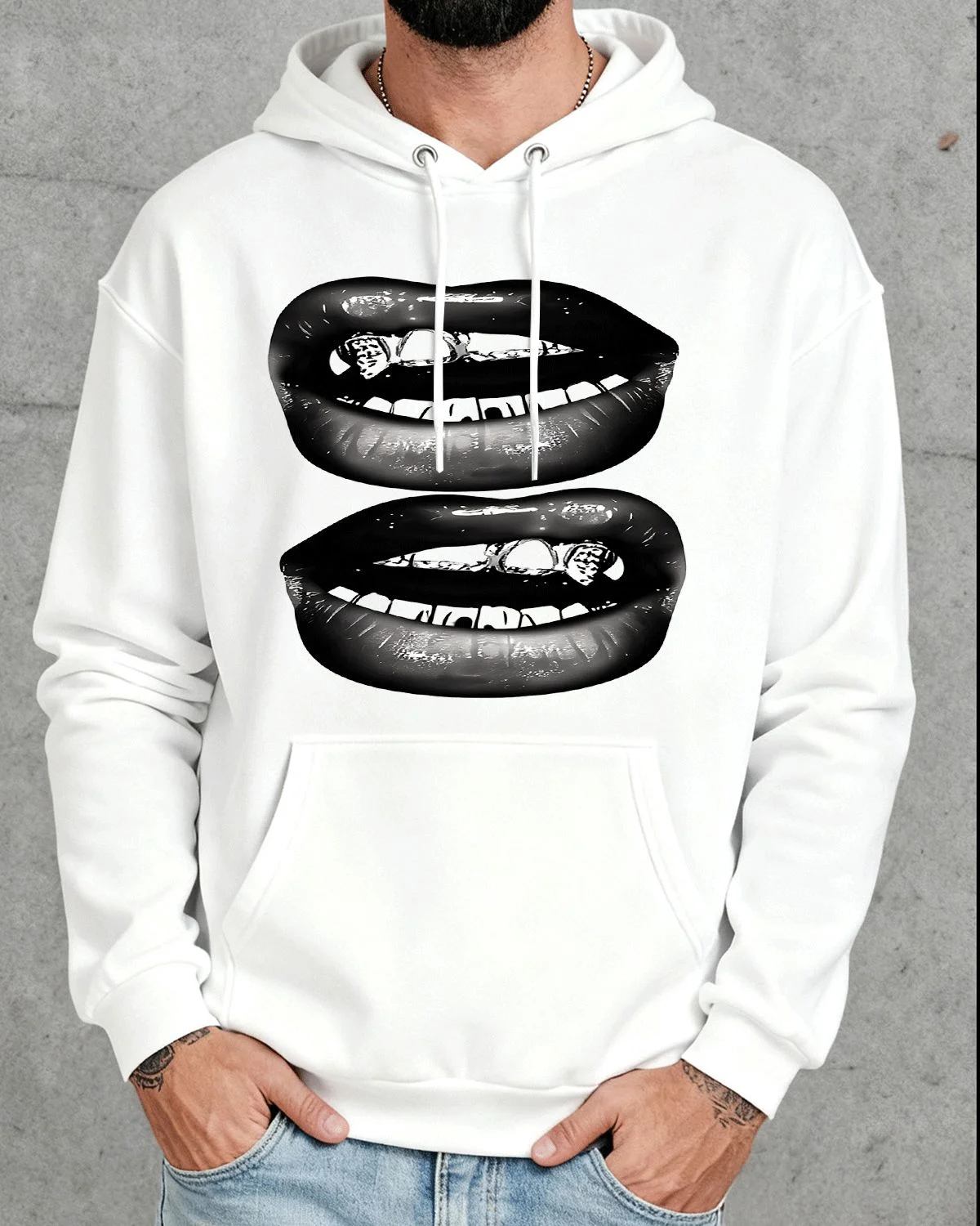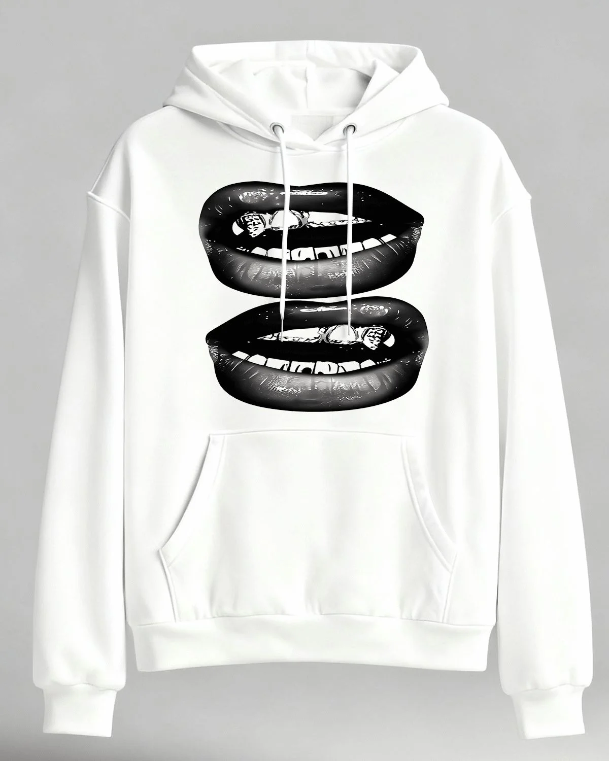 Black Glossy Lips Cozy Graphic Hoodie for Men and Women - Urban Chic, Long Sleeve, Soft Fabric, Comfortable Fit