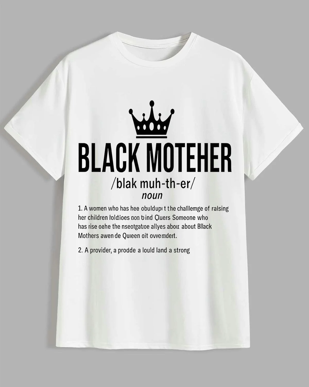 Black Mother Crown Definition Summer Cotton Graphic T Shirt - Casual Vintage, Short Sleeve, Soft Fabric, Comfortable Fit