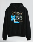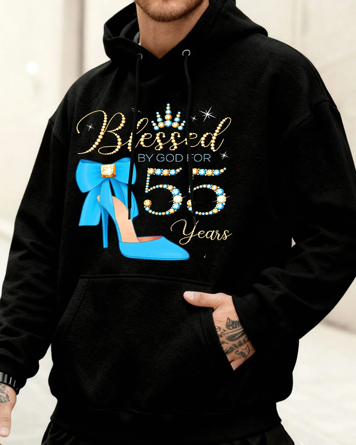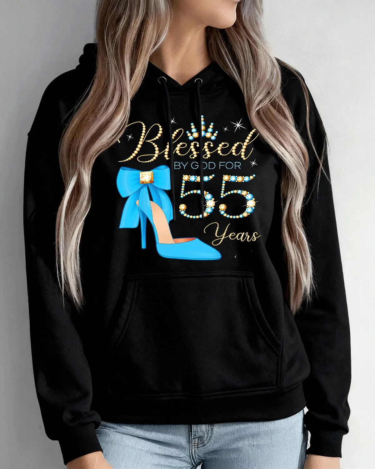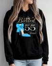Blessed Birthday 55 Years Blue Crown and Heel Cozy Graphic Hoodie for Men and Women - Casual Chic, Long Sleeve, Soft Fabric, Comfortable Fit