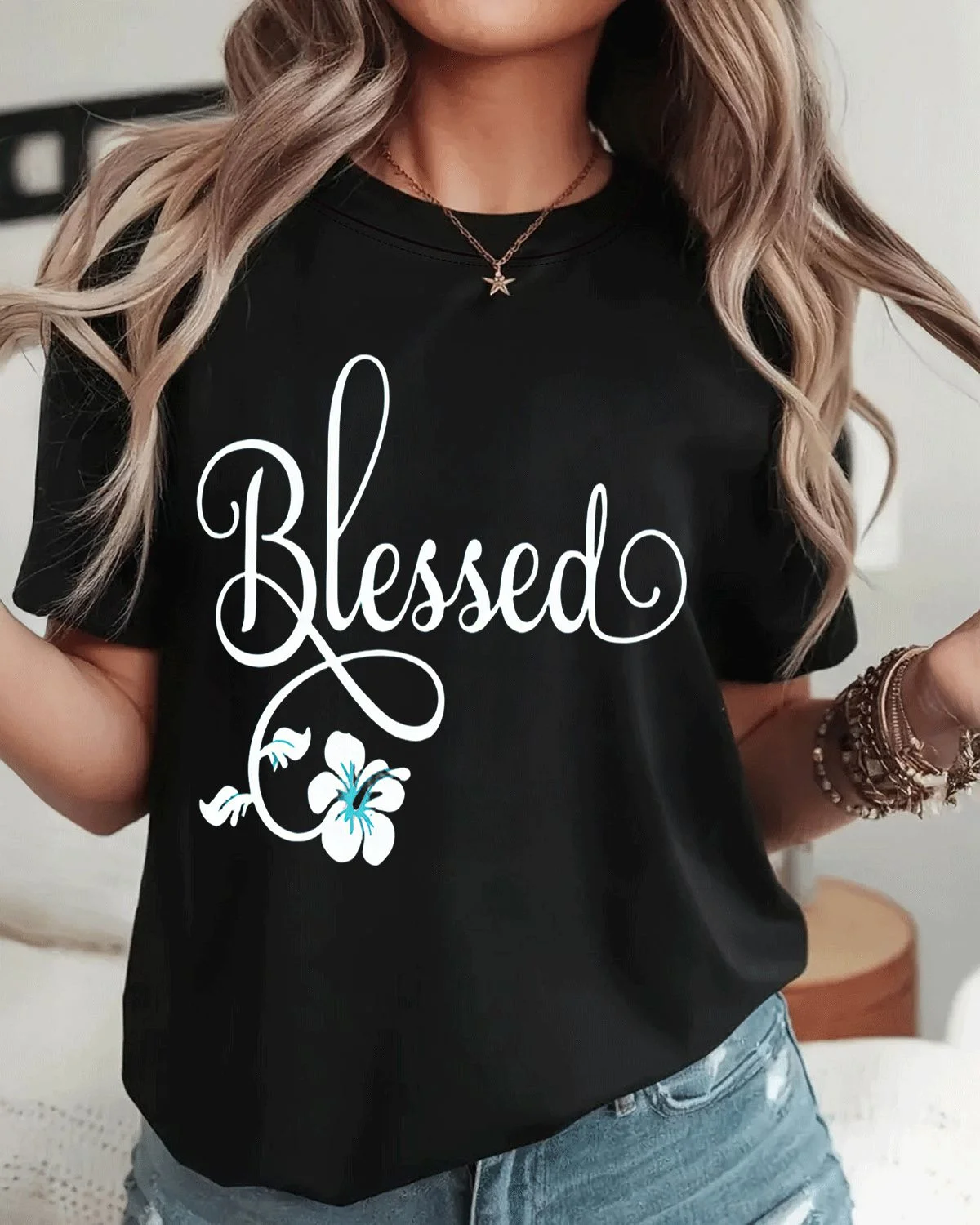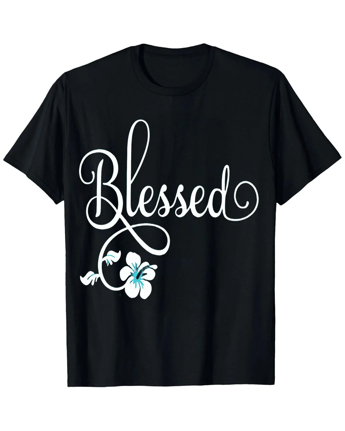 Blessed Floral Summer Cotton Graphic T Shirt - Casual Vintage, Short Sleeve, Soft Fabric, Comfortable Fit
