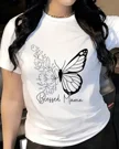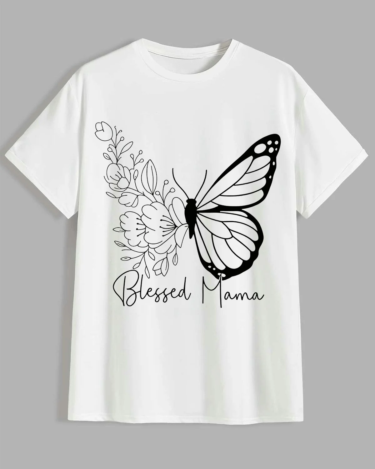 Blessed Mom Butterfly and Flowers Summer Cotton Graphic T Shirt - Casual Chic, Short Sleeve, Soft Fabric, Comfortable Fit