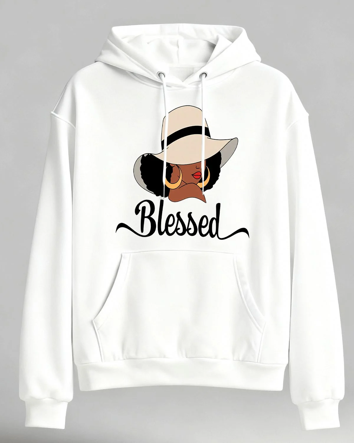 Blessed Woman with Hat and Earrings Cozy Graphic Hoodie for Men and Women - Casual Chic, Long Sleeve, Soft Fabric, Comfortable Fit