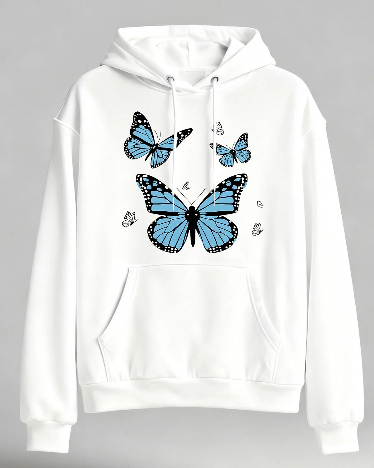 Blue Butterfly Swarm Cozy Graphic Hoodie for Men and Women - Casual Artistic, Long Sleeve, Soft Fabric, Comfortable Fit