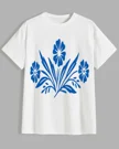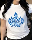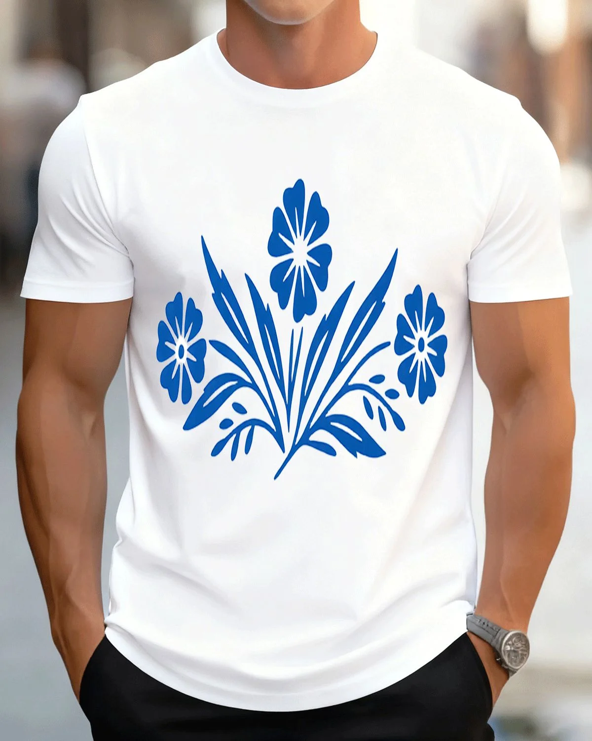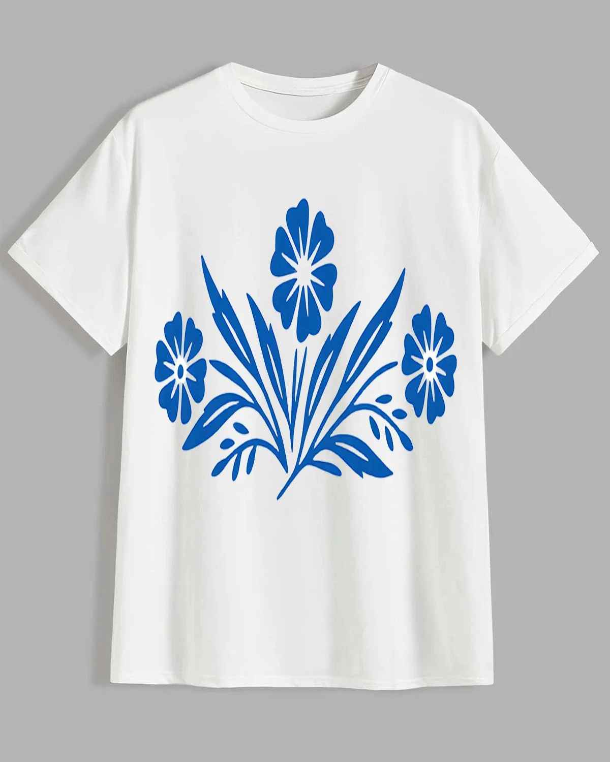 Blue Wildflower Bouquet Summer Cotton Graphic T Shirt - Vintage Artistic, Short Sleeve, Soft Fabric, Comfortable Fit