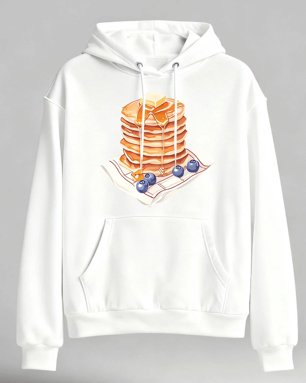 Blueberry Pancakes with Syrup Cozy Graphic Hoodie for Men and Women - Casual Vintage, Long Sleeve, Soft Fabric, Comfortable Fit