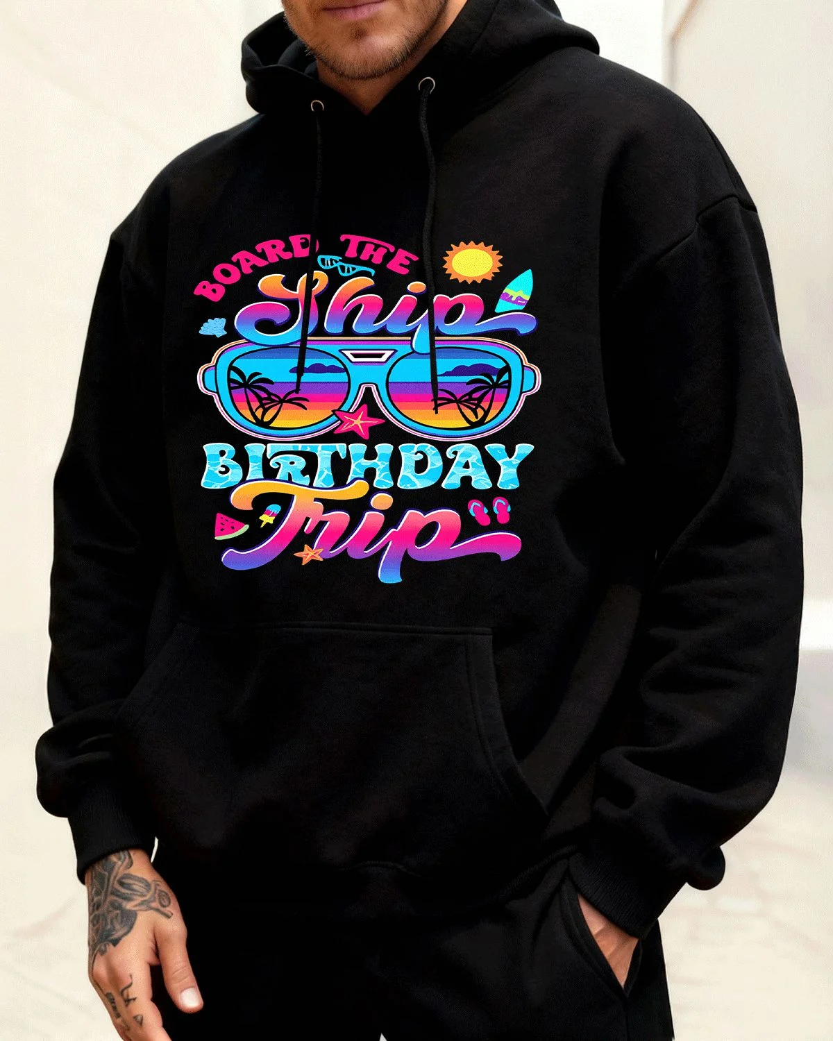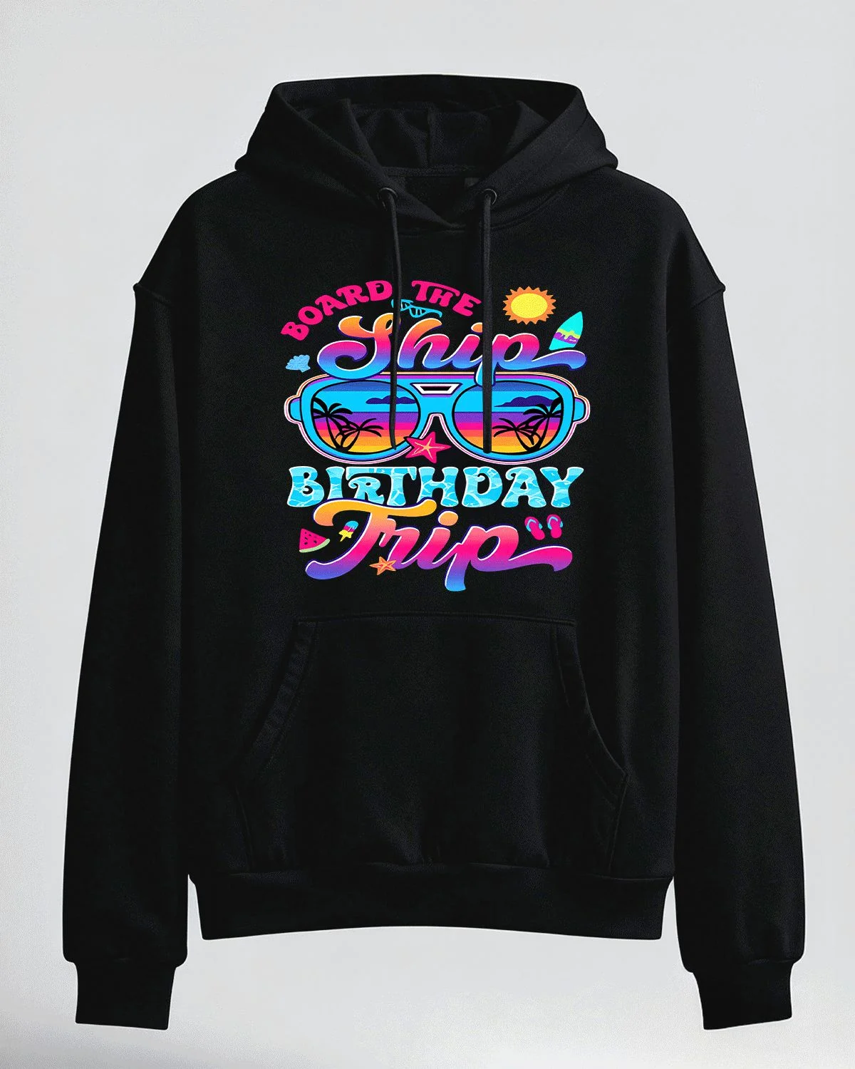 Board the Ship Birthday Trip Cozy Graphic Hoodie for Men and Women - Casual Retro, Long Sleeve, Soft Fabric, Comfortable Fit
