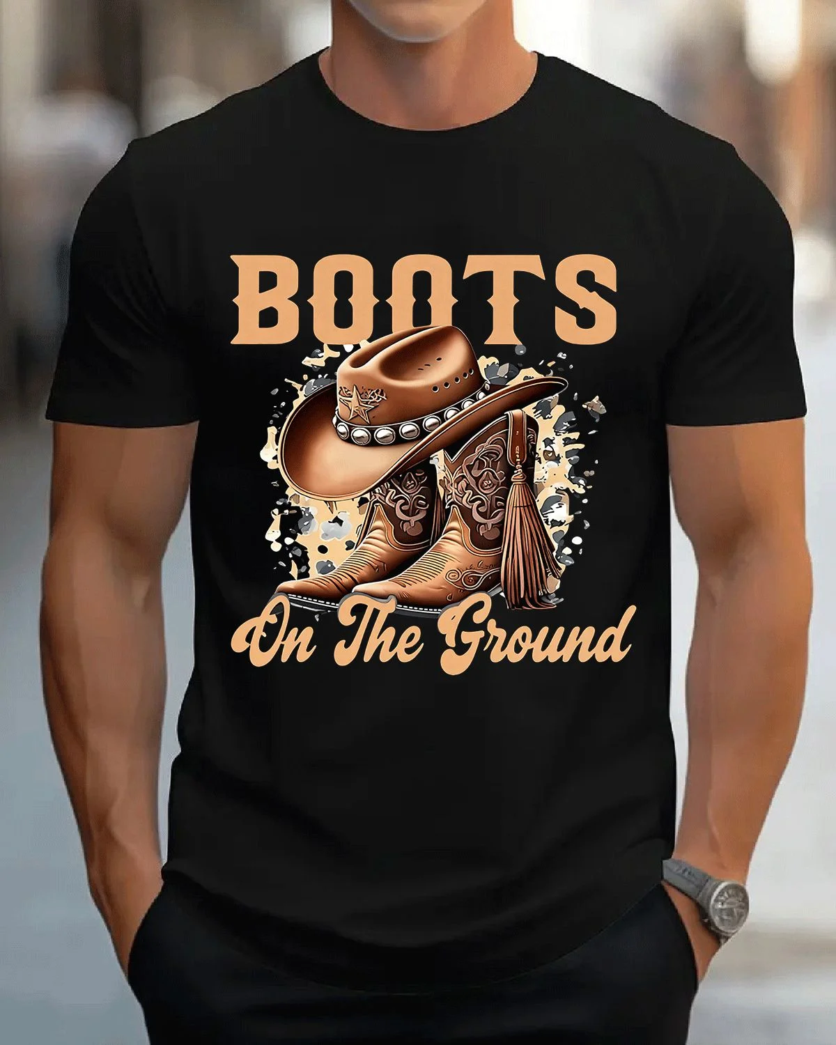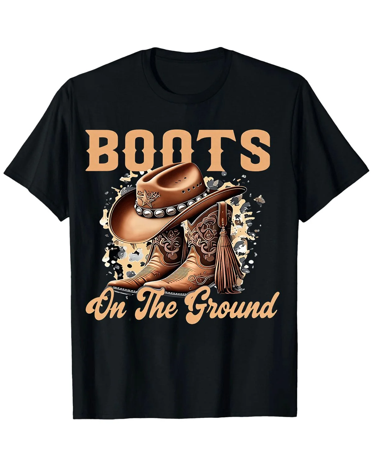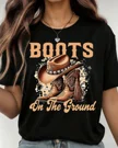 Boots On The Ground Western Cowboy Summer Cotton Graphic T Shirt-Vintage Retro,Short Sleeve,Soft Fabric,Comfortable Fit