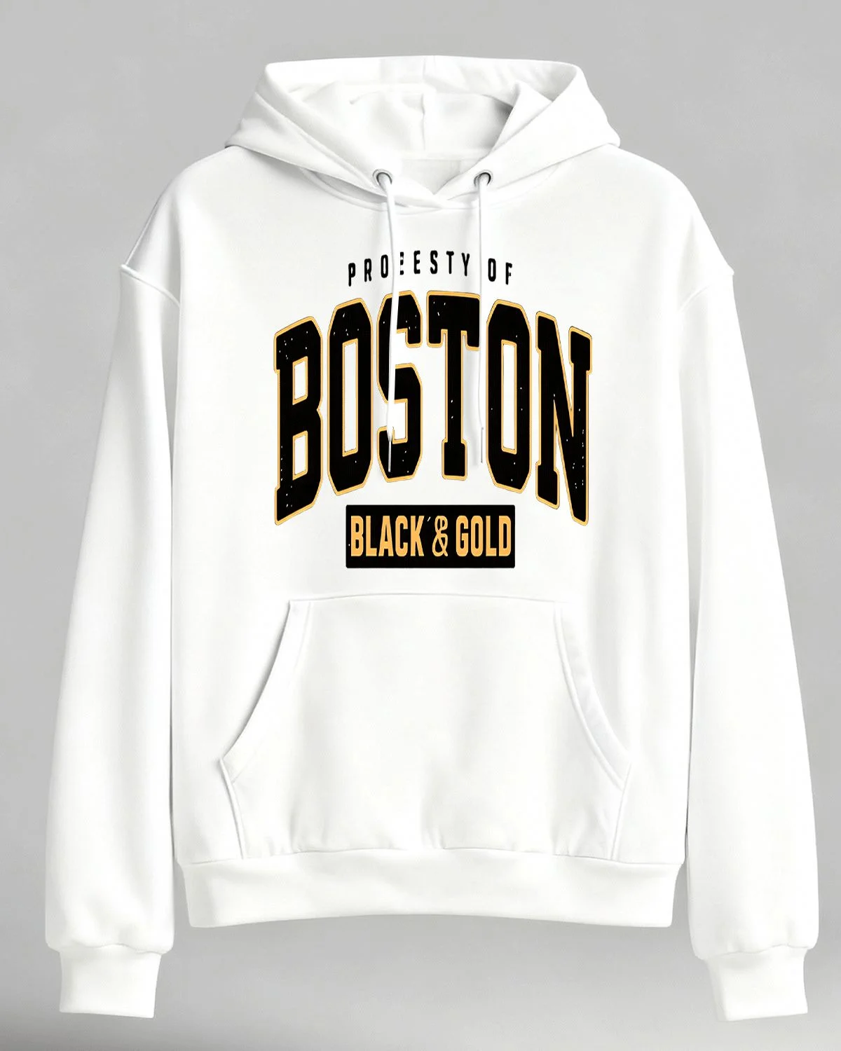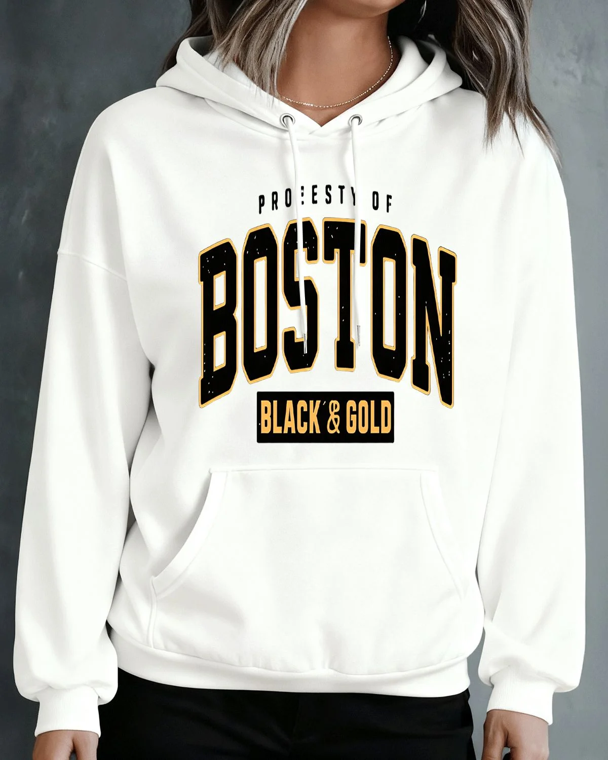 Boston Black and Gold Cozy Graphic Hoodie for Men and Women - Casual Vintage, Long Sleeve, Soft Fabric, Comfortable Fit