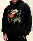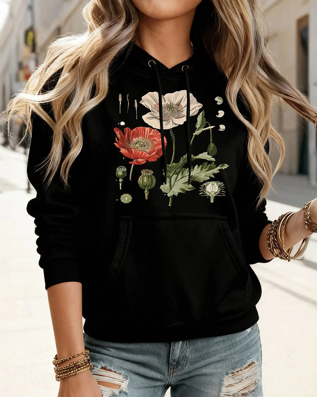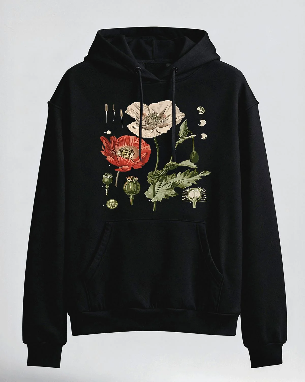 Botanical Red and White Poppies Cozy Graphic Hoodie for Men and Women - Vintage Artistic, Long Sleeve, Soft Fabric, Comfortable Fit