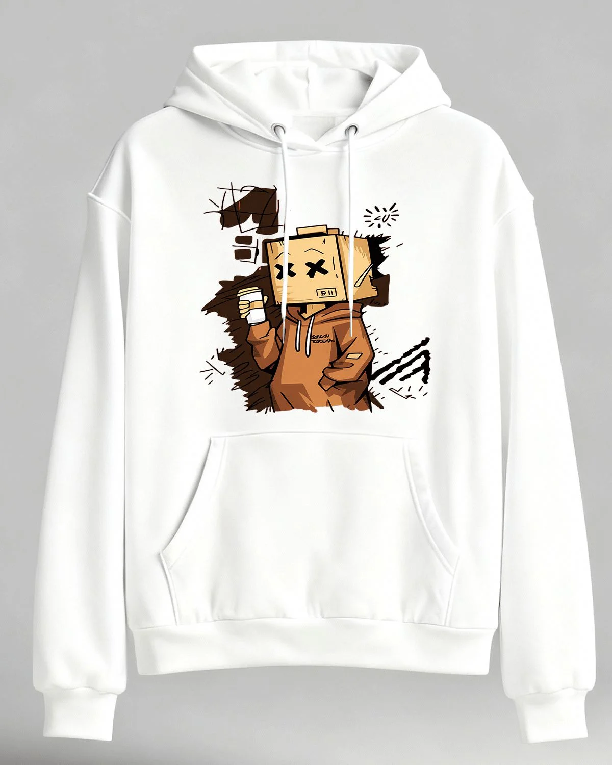 Box Head Coffee Lover Cozy Graphic Hoodie for Men and Women - Casual Urban, Long Sleeve, Soft Fabric, Comfortable Fit